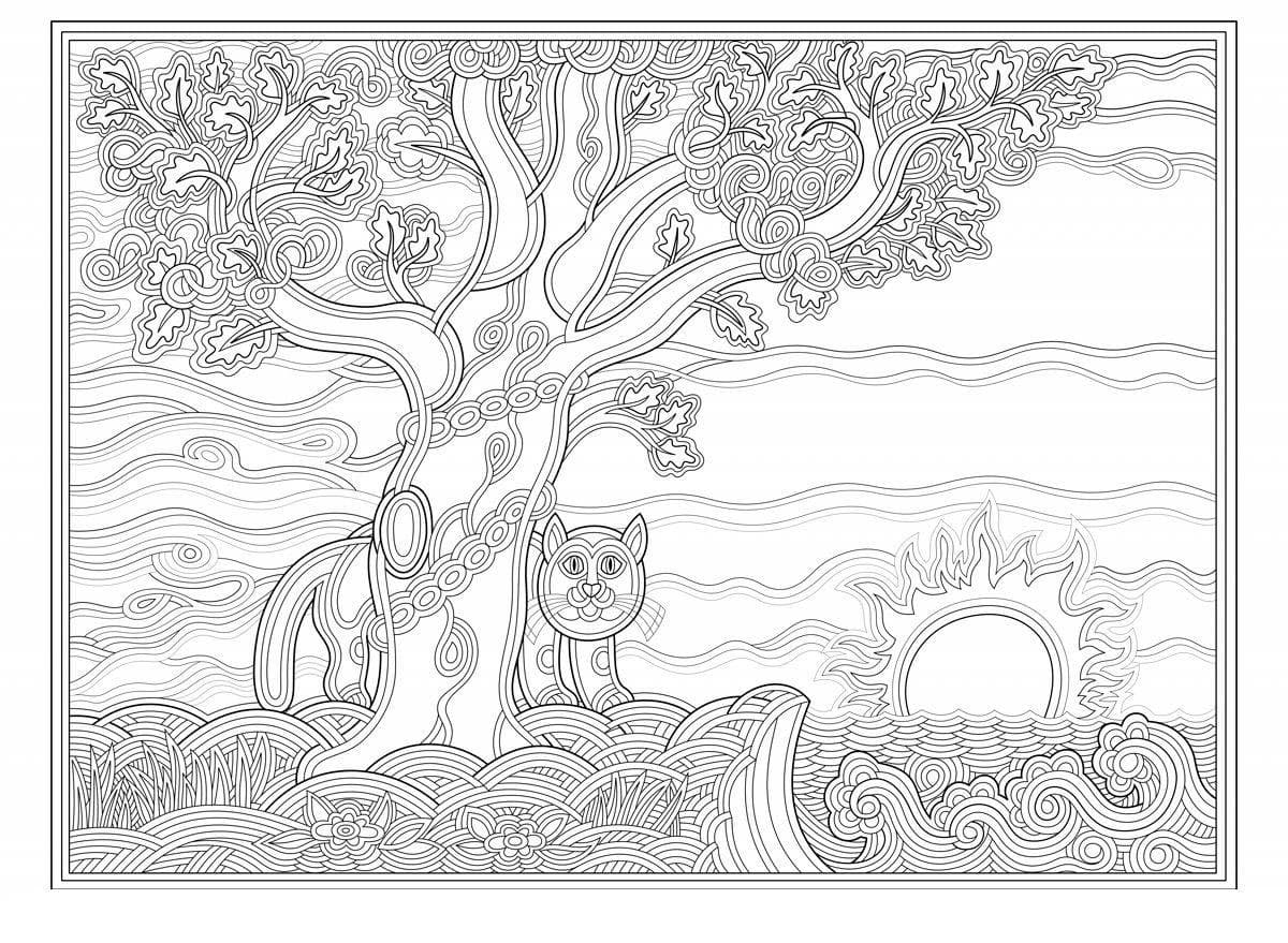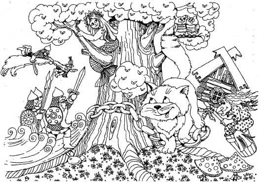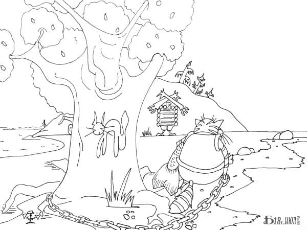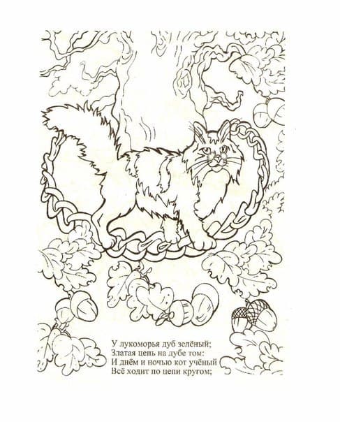 У лукоморья дуб зеленый - стих великого русского поэта, Александра Сергеевича Пушкина. При помощи этих раскрасок Ваш ребенок сможет визуально ознакомиться с творчеством Пушкина и почувствовать себя настоящим художником. В это разделе Вы сможете увидеть большой дуб с цепью и мудрого кота с русалкой, бабу ягу в ступе и огромного трехглавого дракона - змея горыныча. Так же тут находятся раскраски кощея, смерть которого находится в игле, а игла в яйце. На нашем сайте Вы можете совершенно бесплатно скачать и распечатать раскраску у лукоморья дуб зеленый в хорошем качестве.