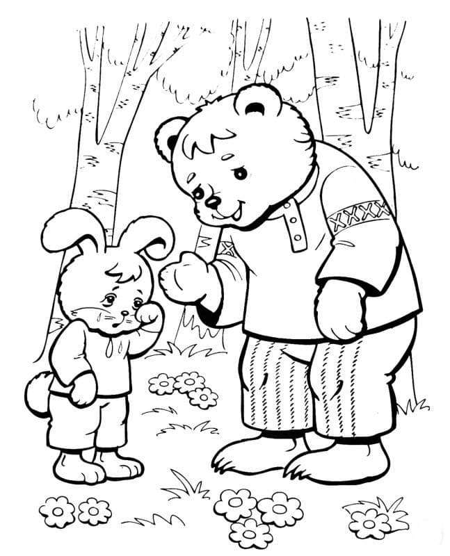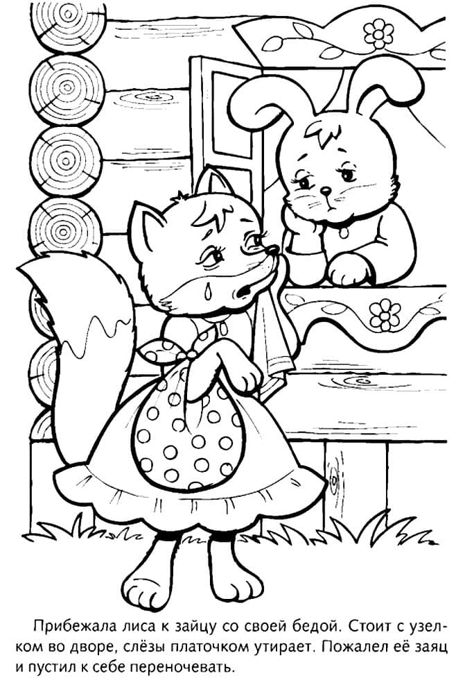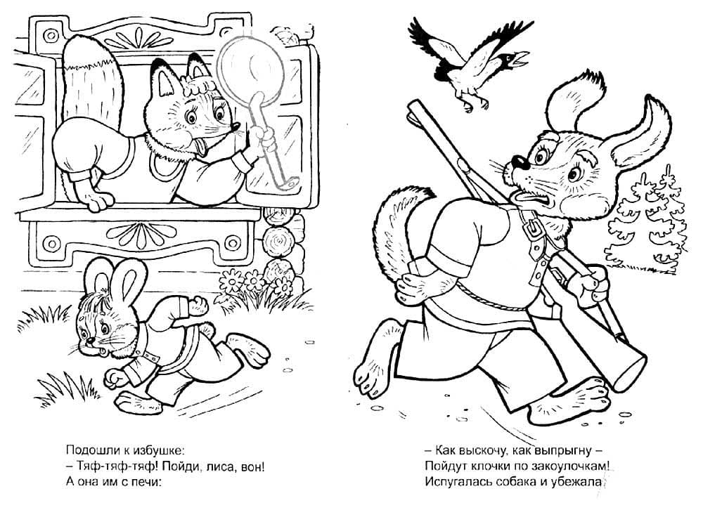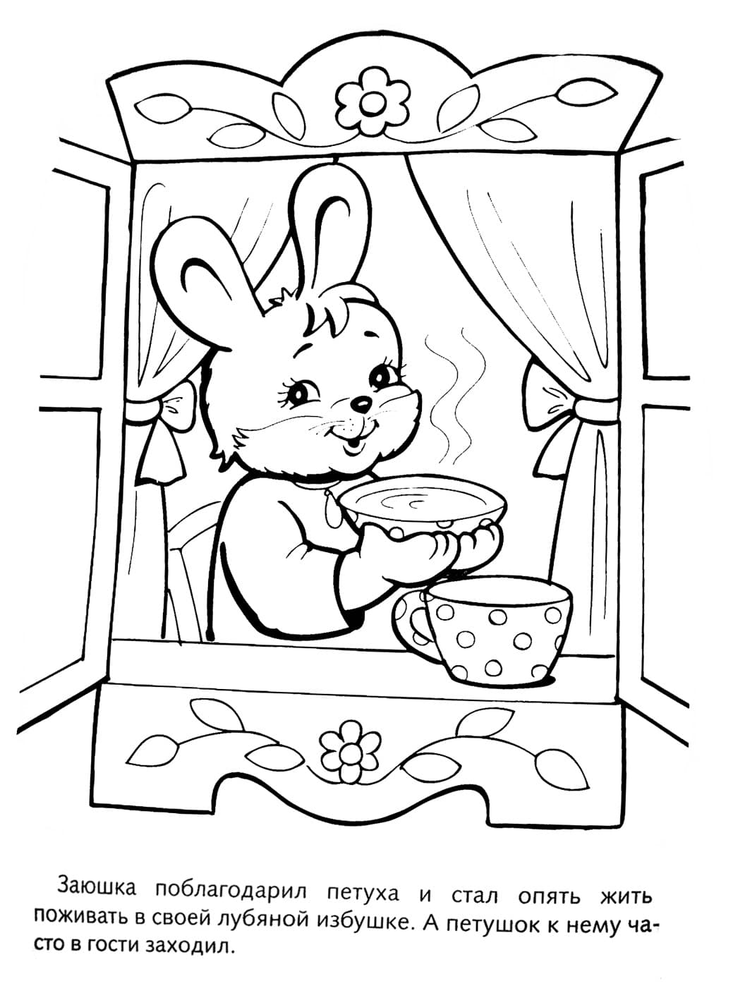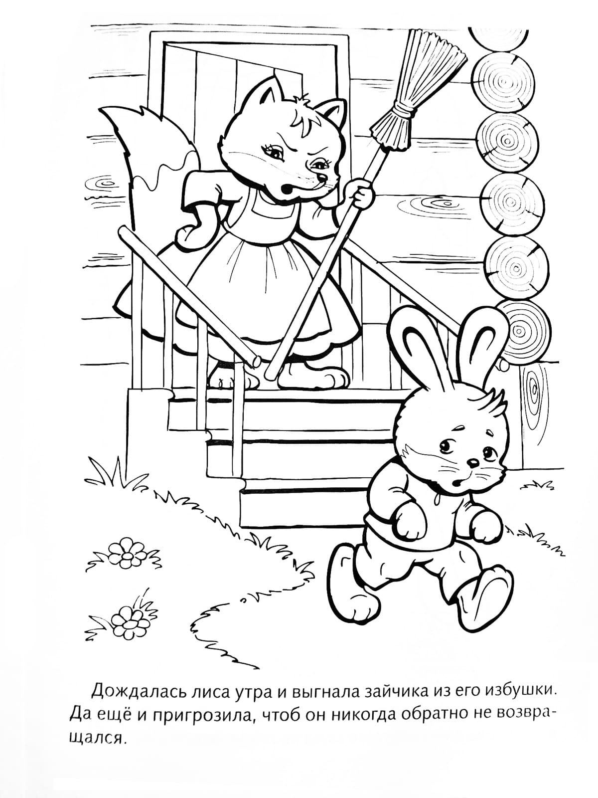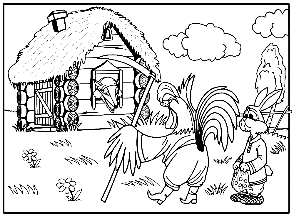 В сказе Заюшкина Избушка рассказывается о том, что нельзя пускать в дом незнакомых людей, так как тебя самого потом могут выгнать, как и случилось с доверчивым зайчиком в сказке. Он построил себе деревянный дом и впустил туда жить лисичку, которая оказалась очень хитрой и потом выгнала зайку из своего же дома. Хорошо, что зайцу попался добрый и храбрый петух с косой, который смог прогнать лису и вернуть зайцу его дом. На этой странице Вы можете совершенно бесплатно скачать и распечатать раскраску Заюшкина Избушка в хорошем качестве.