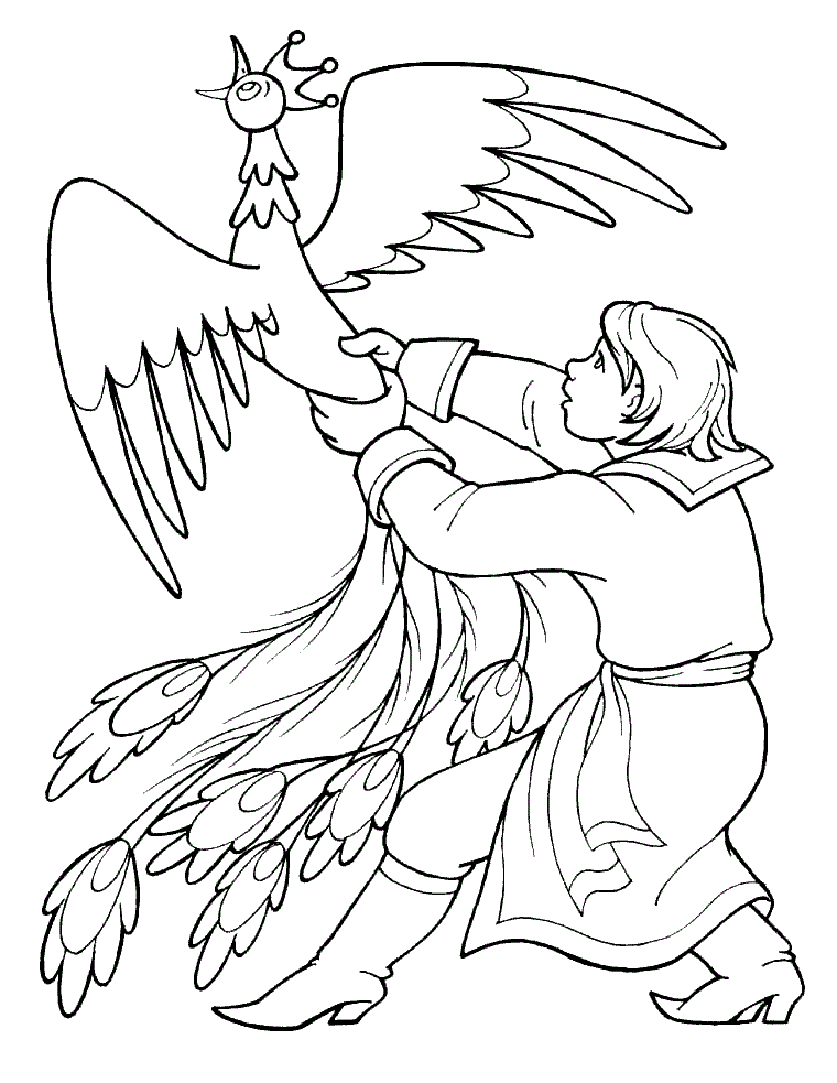 Серый Волк нашел тело Ивана и поймал двух молодых ворон, которые должны были его съесть. Их мать умоляла за них, и волк послал ее принести воду смерти, которая восстанавливала тело, и воду жизни, которая оживляла его. Волк принес его на свадьбу вовремя, чтобы остановить ее; старшие братья были сделаны слугами или убиты волком, но Иван женился на Елене и жил с ней счастливо. На этой странице Вы можете бесплатно скачать и распечатать раскраску Жар-Птица в хорошем качестве.