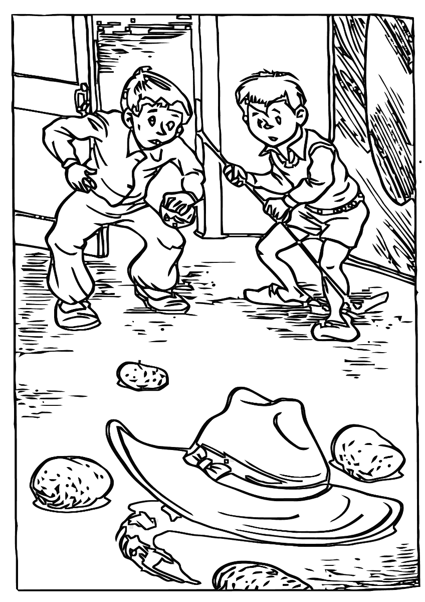 Николай Носов написал очень интересный рассказ под названием "Живая Шляпа", в которой рассказывается о шляпе которая сама упала с комода и побежала. Заметили её два мальчика которые отдыхали дома, звали их Вадик и Вова. В конце концов оказалось что под шляпой просто спрятался маленький котенок, который бегал вместе с ней. На нашем сайте Вы можете совершенно бесплатно скачать и распечатать раскраску Живая Шляпа в хорошем качестве. Ребенок при помощи этой раскраски может весело провести время и почувствовать себя настоящим художником.