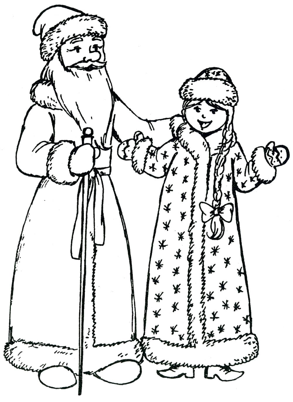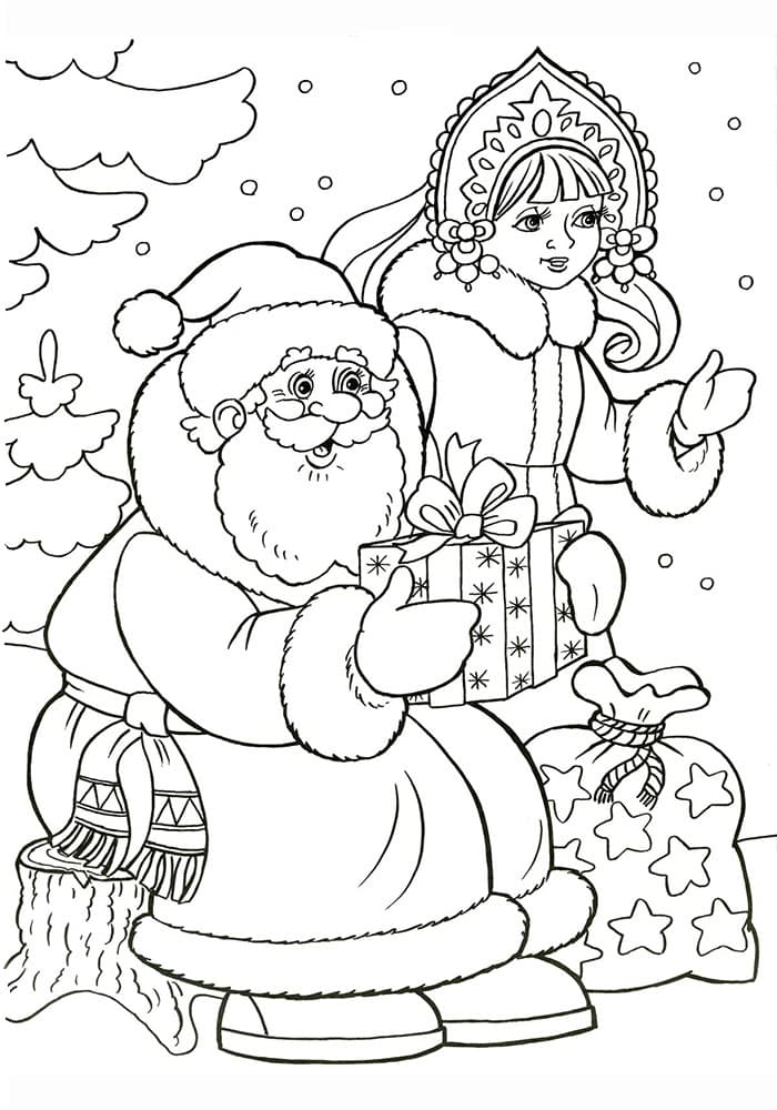 Кто не знает деда мороза и снегурочку, ведь именно они слушают стишки на новый год и дарят подарки детям. На нашем сайте Вы совершенно бесплатно можете скачать и распечатать раскраску дед мороз и снегурочка в хорошем качестве. Благодаря раскраскам ребенок сможет полностью погрузиться в атмосферу нового года и ощутить себя художником. Раскрашивание оказывает положительное влияние на развитие мозга ребенка и моторики рук. Эта раскраска может подойти как для украшения новогодних праздников, так и для создания баннеров или стендов, а еще эту раскраску можно на новый год подарить деду морозу и снегурочке.