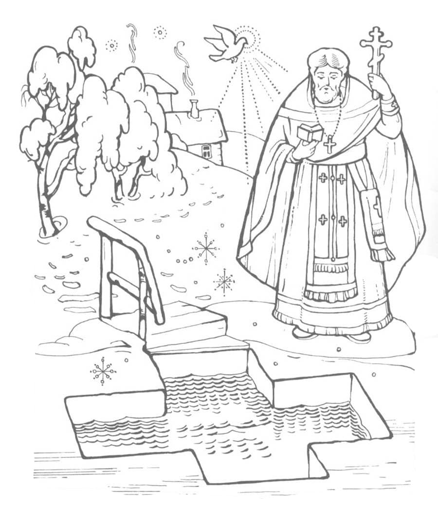 Во многих странах крещение празднуется с особой выпечкой, и дети часто получают маленькие подарки в своей обуви в честь подарков волхвов младенцу Иисусу. Этот праздник также имеет ряд традиций, связанных с водой как отражением крещения Иисуса, включая благословение домов святой водой. В этот день многие люди ныряют в холодную прорубь три раза и после каждого выныривания крестятся. С помощью раскраски Вы сможете почувствовать атмосферу праздника на себе, а так же почувствуете себя настоящим художником. На нашем сайте Вы совершенно бесплатно можете скачать и распечатать раскраску крещение в хорошем качестве.