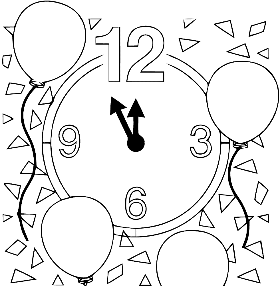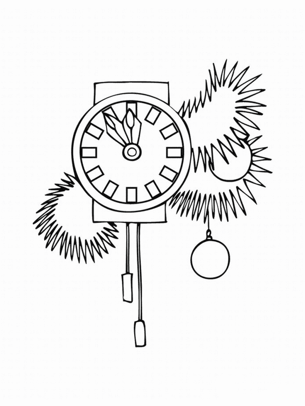 Часы - это устройство, используемое для определения времени. Движущиеся стрелки на циферблате часов указывают на текущий час, минуту и секунду. Часы могут быть достаточно большими, чтобы находиться в гигантской башне. Часы также могут быть маленькими, чтобы поместиться на запястье человека, где они называются наручными часами. Многие часы созданы для того, чтобы быть красивыми объектами, а также полезными устройствами. Существует три основных типа часов: механические, электрические и атомные. Все три имеют одинаковые основные части. Они должны иметь источник питания, устройство для поддержания движения деталей через равные промежутки времени и способ отображения времени. На нашем сайте Вы совершенно бесплатно можете скачать и распечатать раскраску новогодние часы в хорошем качестве.