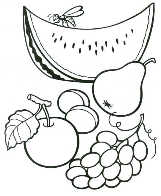 Фрукты, мясистая или сухая созревшая завязь цветущего растения, заключающая в себе семя или семена. Таким образом, абрикосы, бананы и виноград, а также бобовые стручки, кукурузные зерна, помидоры, огурцы и (в их оболочках) желуди и миндаль-все это технически фрукты. В народе, однако, этот термин ограничивается созревшими яичниками, которые сладкие и либо сочные, либо мясистые. На нашем сайте Вы совершенно бесплатно можете скачать и распечатать раскраску фрукты в хорошем качестве. Трафареты и шаблоны подойдут для вырезания и создания аппликаций.