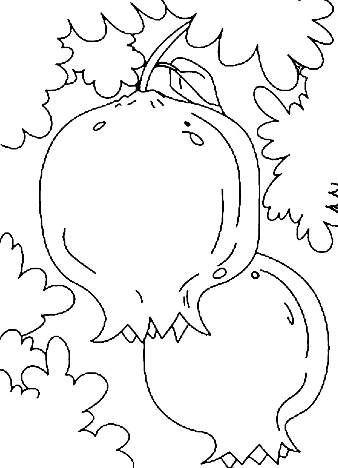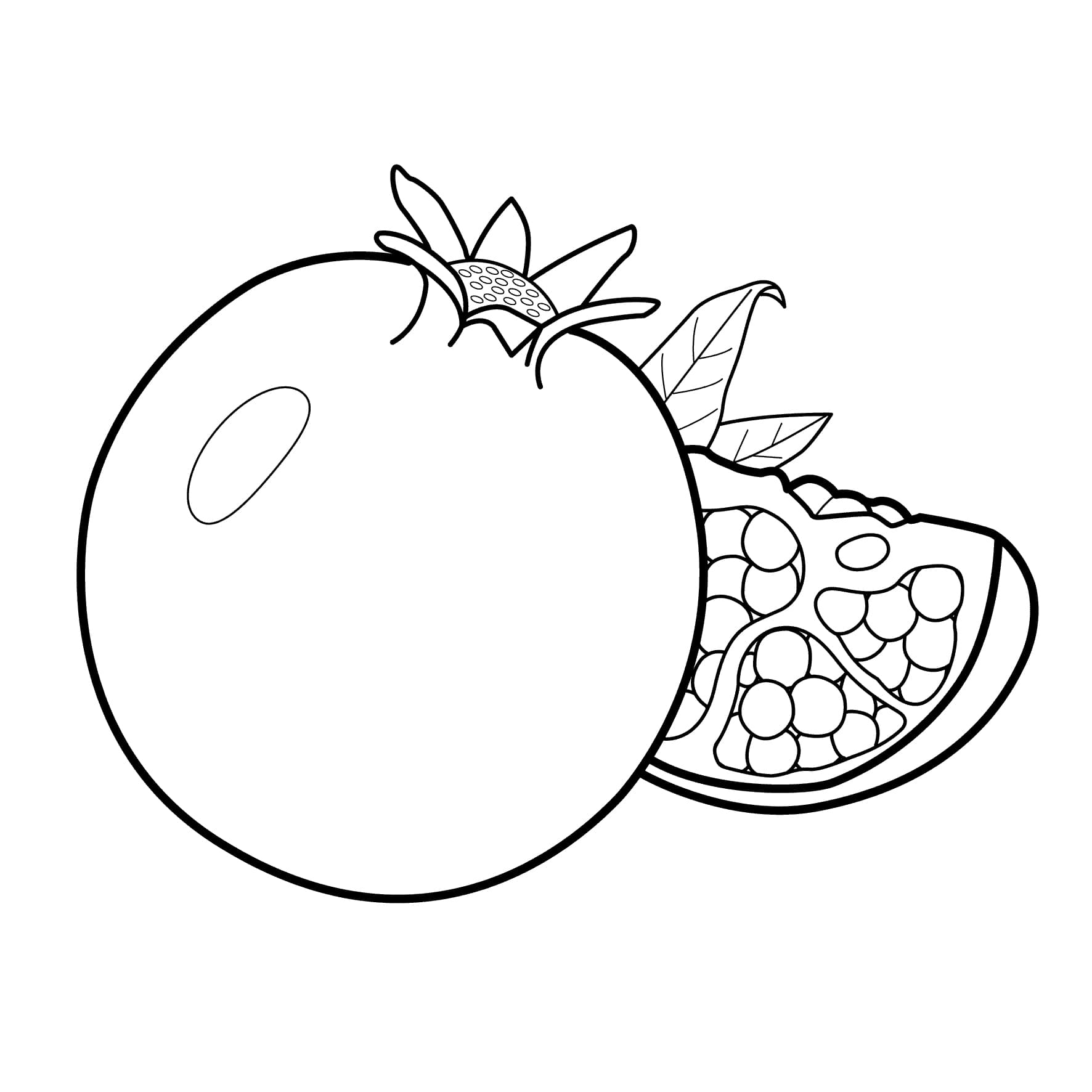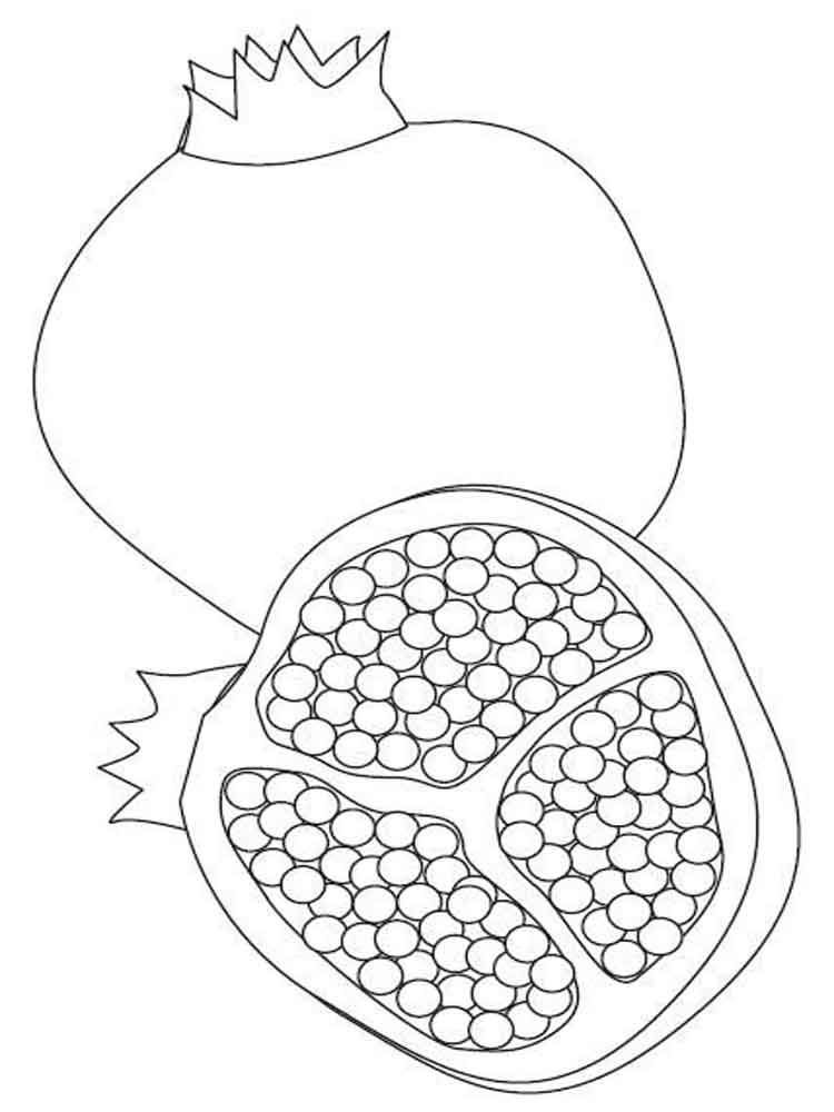 Гранат, кустарник или небольшое дерево семейства Lythraceae и его плоды. Сочные арилы фруктов едят свежими, а сок является источником сиропа гренадина, используемого в ароматизаторах и ликерах. Гранат богат пищевыми волокнами, фолиевой кислотой, витамином С и витамином К. растение, которое может достигать 5 или 7 метров в высоту, имеет эллиптические или копьевидные ярко-зеленые листья длиной около 7,5 см. Красивые пазушные оранжево-красные цветки несут к концам веточек. Чашечка (состоящая из чашелистиков) трубчатая и стойкая, имеет от пяти до семи лопастей; лепестки копьевидные, вставленные между лопастями чашечки. Завязь встроена в трубку чашечки и содержит несколько отделений в два ряда, одно над другим. На нашем сайте Вы совершенно бесплатно скачать и распечатать раскраску гранат в хорошем качестве.