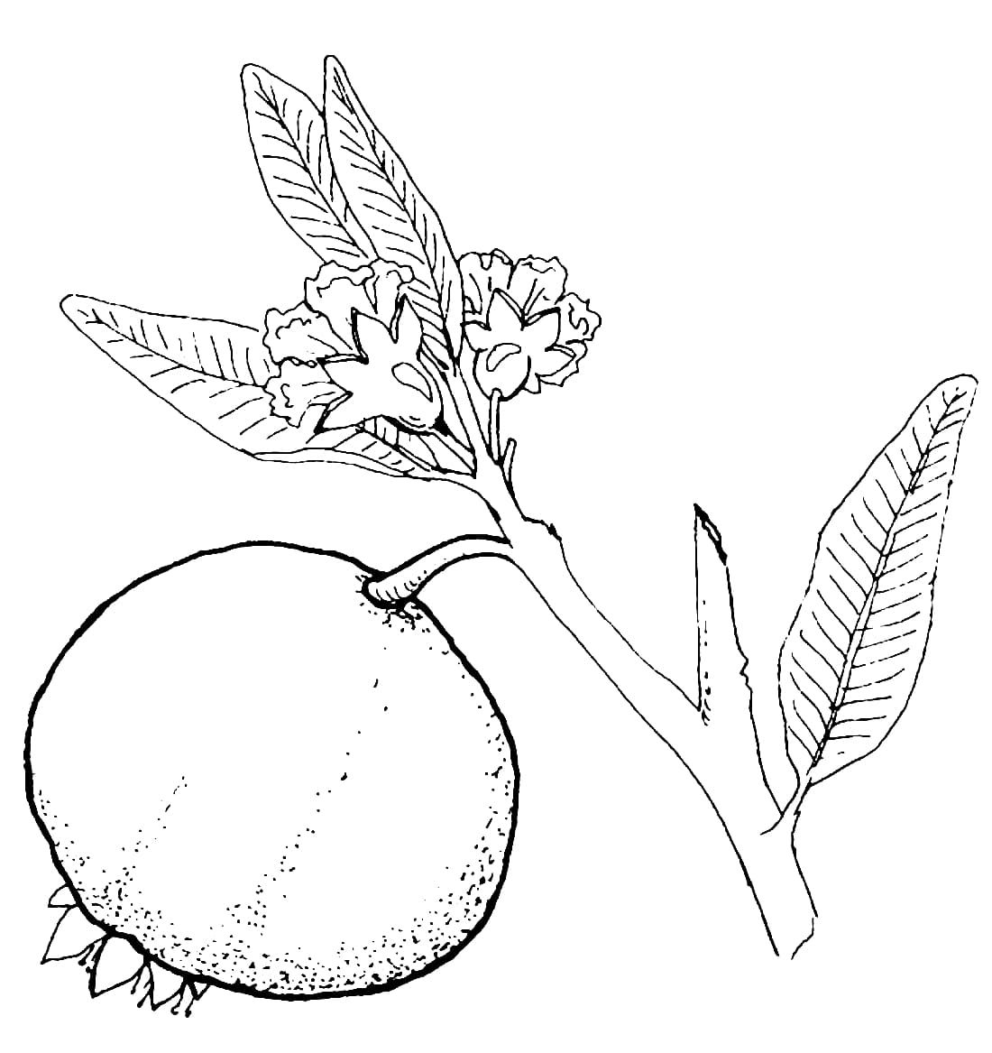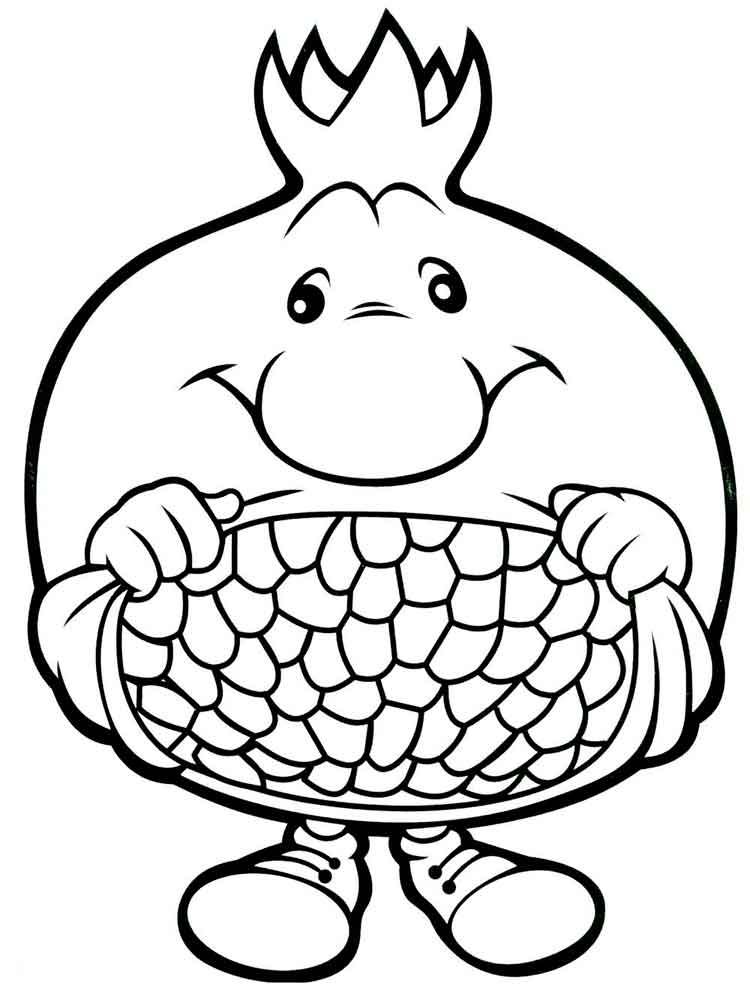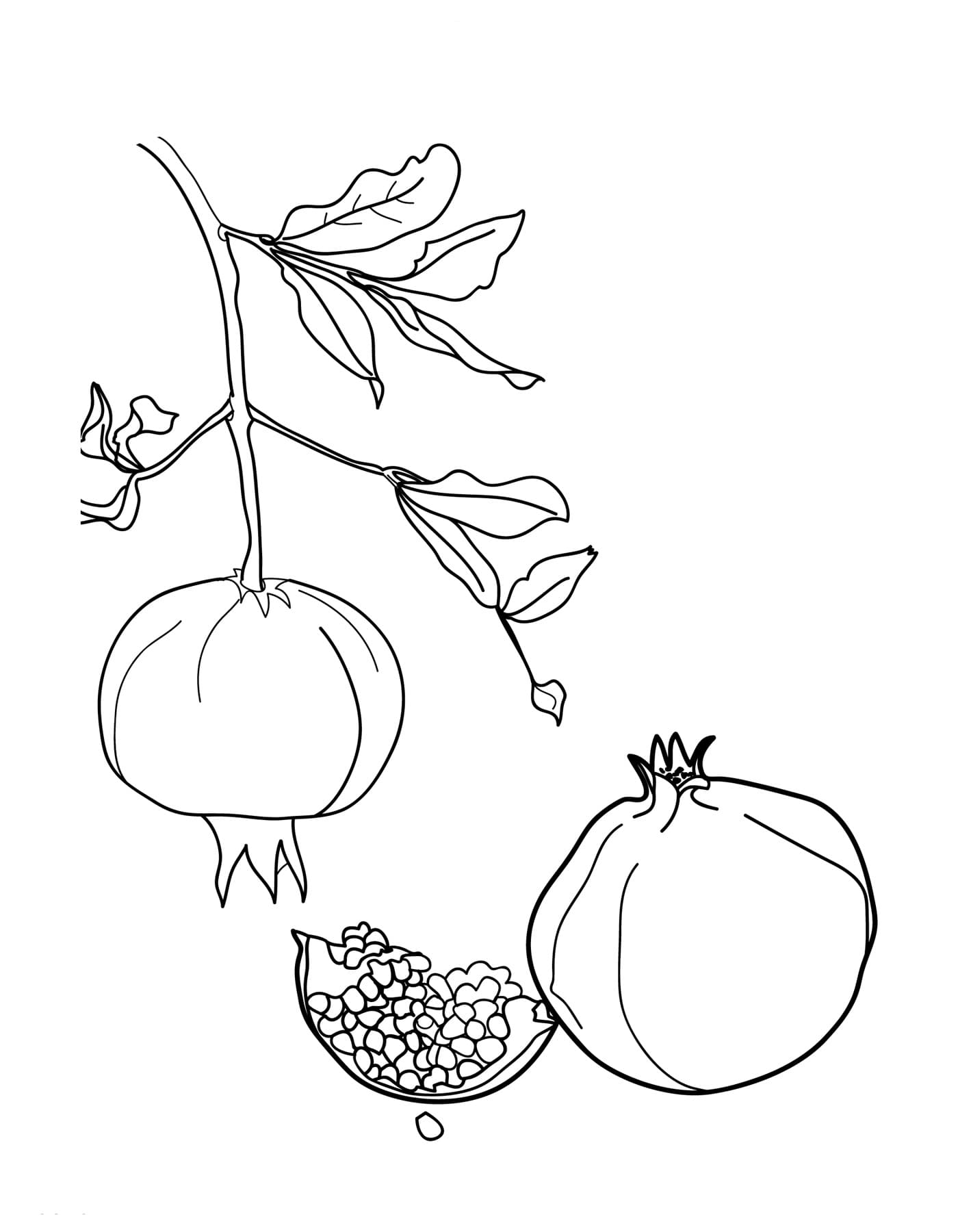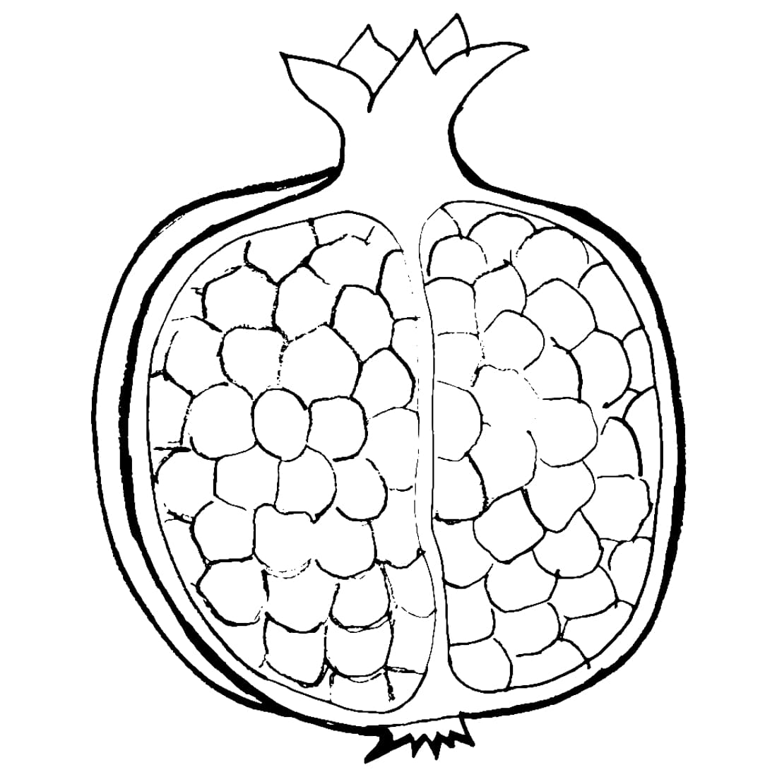 Гранат, кустарник или небольшое дерево семейства Lythraceae и его плоды. Сочные арилы фруктов едят свежими, а сок является источником сиропа гренадина, используемого в ароматизаторах и ликерах. Гранат богат пищевыми волокнами, фолиевой кислотой, витамином С и витамином К. растение, которое может достигать 5 или 7 метров в высоту, имеет эллиптические или копьевидные ярко-зеленые листья длиной около 7,5 см. Красивые пазушные оранжево-красные цветки несут к концам веточек. Чашечка (состоящая из чашелистиков) трубчатая и стойкая, имеет от пяти до семи лопастей; лепестки копьевидные, вставленные между лопастями чашечки. Завязь встроена в трубку чашечки и содержит несколько отделений в два ряда, одно над другим. На нашем сайте Вы совершенно бесплатно скачать и распечатать раскраску гранат в хорошем качестве.