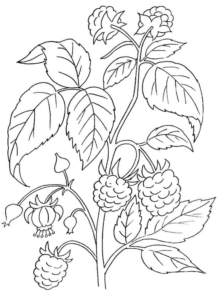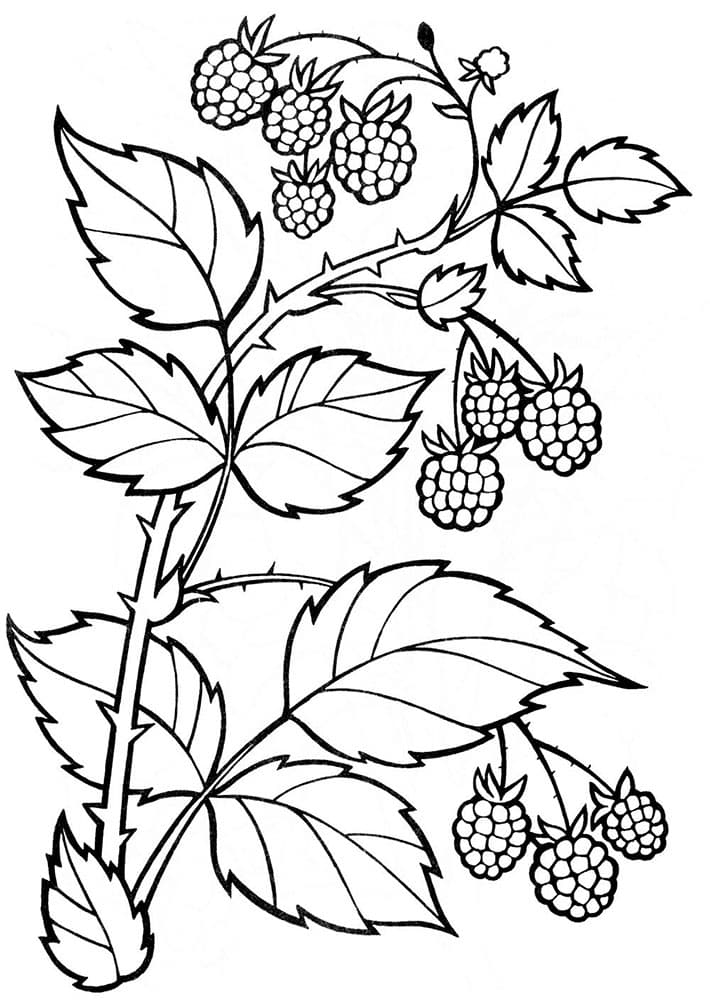 Малина, плоды ежевики рода Rubus (семейство Rosaceae). Плоды малины содержат железо, витамин С и антиоксиданты и обычно едят свежими, часто со сливками или мороженым, как десертный фрукт. Джемы и желе также популярны, а фрукты обычно используются в качестве начинки для кондитерских изделий и в качестве ароматизатора для некоторых ликеров. Малина-это многолетние растения с тростником, которые живут по два года каждый. Тростники либо вооружены колючками, либо гладкие, и многие из них плодоносят только на второй год жизни. Часто достигая более 1,8 метра трости несут сложные листья с тремя или более зубчатыми листьями, в зависимости от вида или сорта. На нашем сайте Вы совершенно бесплатно можете скачать и распечатать раскраску малина в хорошем качестве.