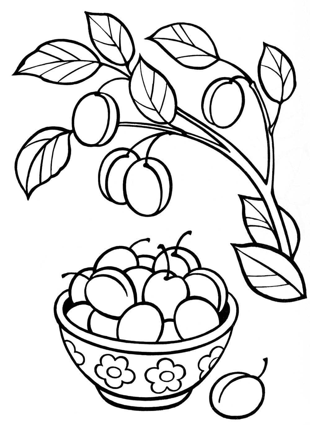 Слива, любое из различных деревьев или кустарников рода Prunus (семейство розоцветных) и их съедобные плоды. Сливы тесно связаны с персиками и вишнями и широко употребляются в пищу в свежем виде как десертные фрукты, приготовленные в виде компота или варенья или запеченные в различных кондитерских изделиях. Европейская слива (P. domestica) и японская слива (P. salicina) выращиваются в коммерческих целях для своих плодов, а ряд видов, включая пурпурнолистную сливу (P. cerasifera), используются в качестве декоративных растений для их привлекательных цветов и листьев. На нашем сайте Вы совершенно бесплатно можете скачать и распечатать раскраску слива в хорошем качестве.