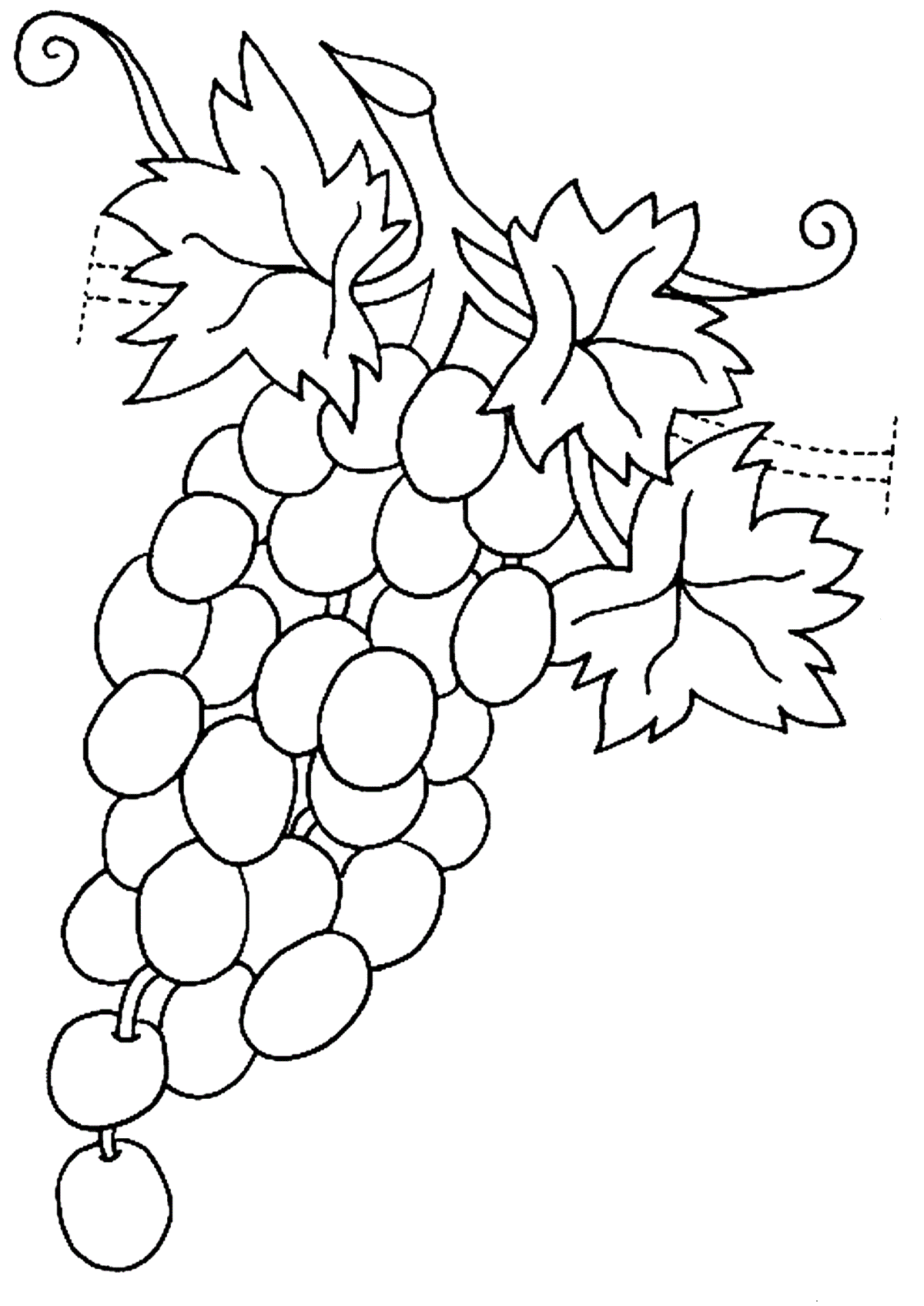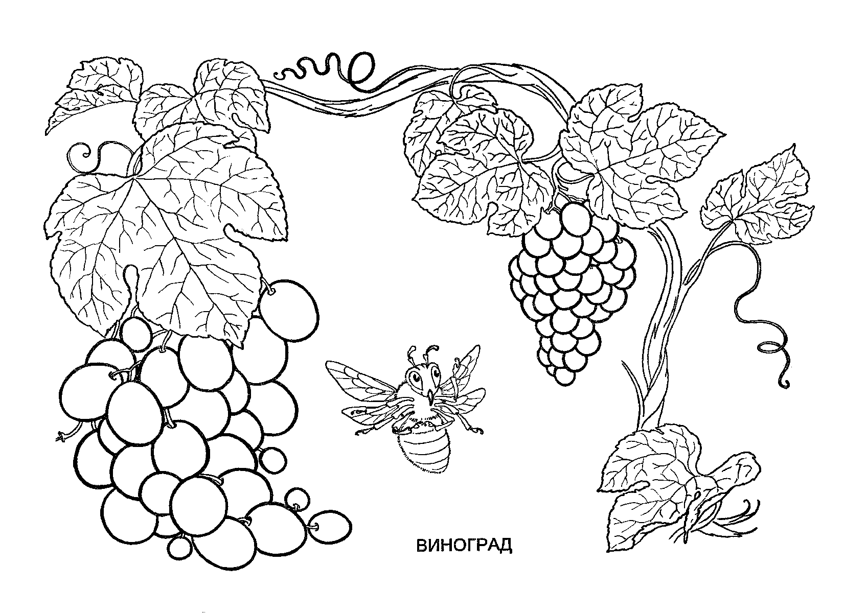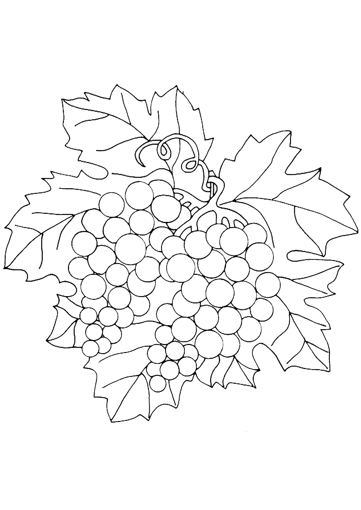 Виноград, род около 60-80 видов виноградных растений семейства Vitaceae, произрастающих в Северной умеренной зоне, включая сорта, которые можно употреблять в пищу в качестве столовых фруктов, сушить для получения изюма или измельчать для получения виноградного сока или вина. Виноград обычно представляет собой древесную лозу, поднимающуюся с помощью усиков (модифицированных ветвей) и часто достигающую длины 17 метров или более. В засушливых районах он может образовывать почти прямостоячий кустарник. Съедобные листья чередуются, пальчато-лопастные и всегда зубчатые. Маленькие зеленоватые цветки в гроздьях предшествуют плоду, цвет которого варьируется от почти черного до зеленого, красного и янтарного. Ботанически плод - это ягода, более или менее шаровидная, внутри сочной мякоти которой лежат семена. У многих сортов плодов развивается беловатый порошкообразный налет, или цветение. На нашем сайте Вы совершенно бесплатно можете скачать и распечатать раскраску виноград в хорошем качестве.