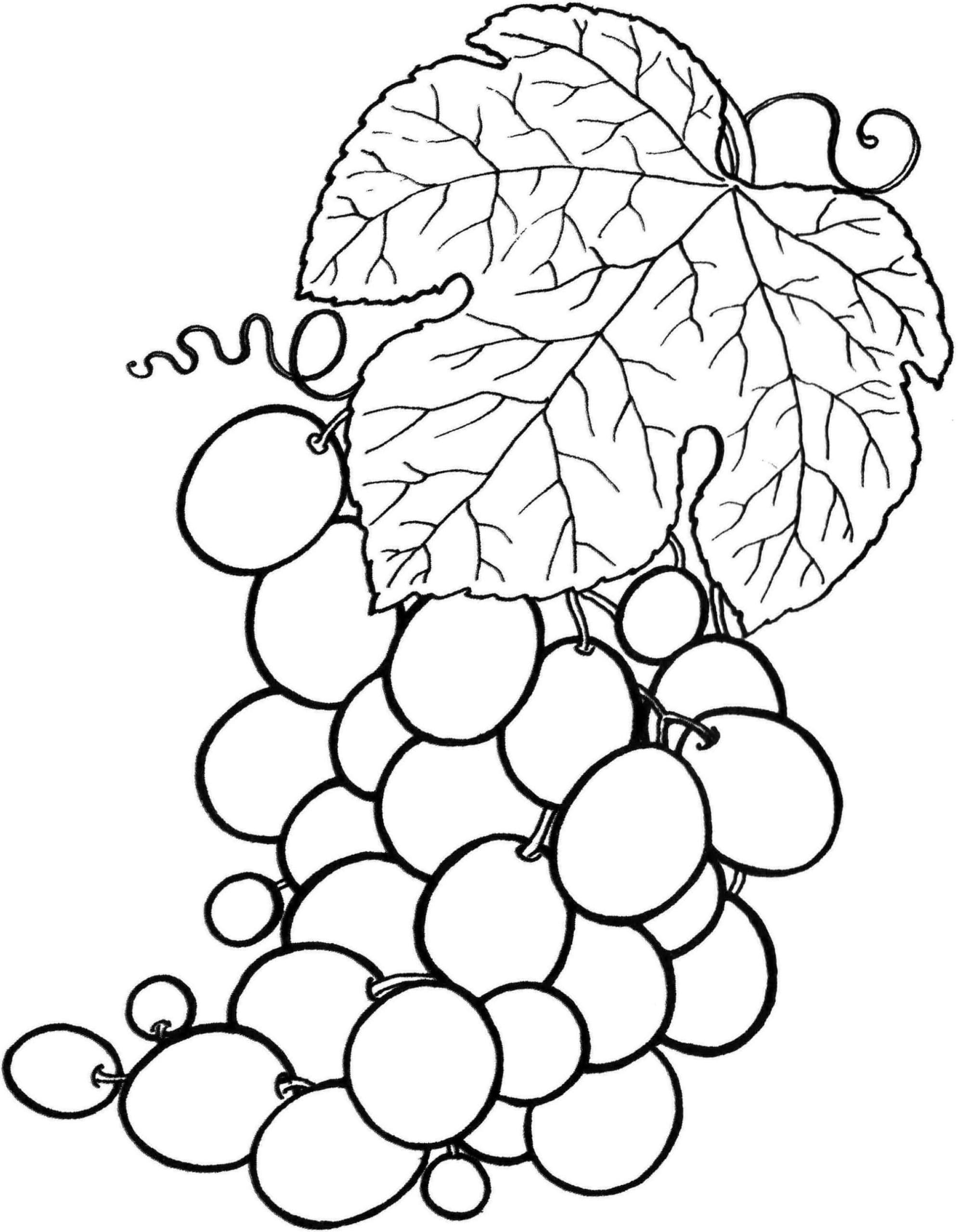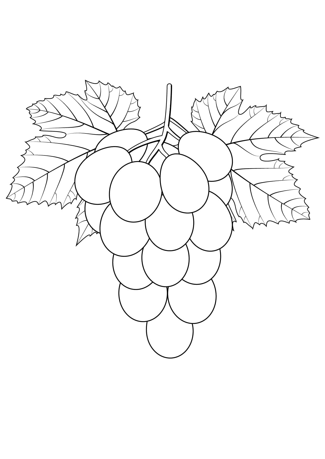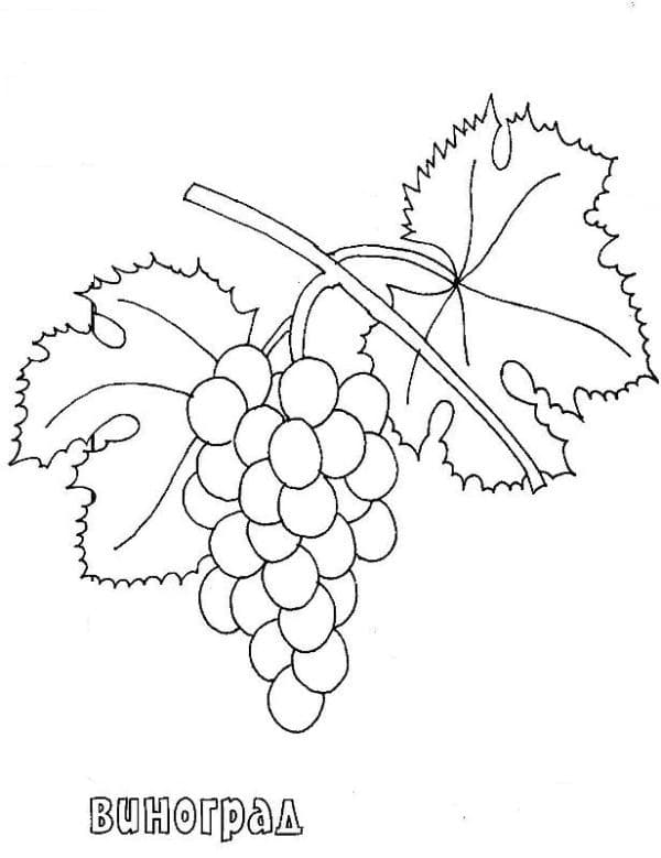 Виноград, род около 60-80 видов виноградных растений семейства Vitaceae, произрастающих в Северной умеренной зоне, включая сорта, которые можно употреблять в пищу в качестве столовых фруктов, сушить для получения изюма или измельчать для получения виноградного сока или вина. Виноград обычно представляет собой древесную лозу, поднимающуюся с помощью усиков (модифицированных ветвей) и часто достигающую длины 17 метров или более. В засушливых районах он может образовывать почти прямостоячий кустарник. Съедобные листья чередуются, пальчато-лопастные и всегда зубчатые. Маленькие зеленоватые цветки в гроздьях предшествуют плоду, цвет которого варьируется от почти черного до зеленого, красного и янтарного. Ботанически плод - это ягода, более или менее шаровидная, внутри сочной мякоти которой лежат семена. У многих сортов плодов развивается беловатый порошкообразный налет, или цветение. На нашем сайте Вы совершенно бесплатно можете скачать и распечатать раскраску виноград в хорошем качестве.