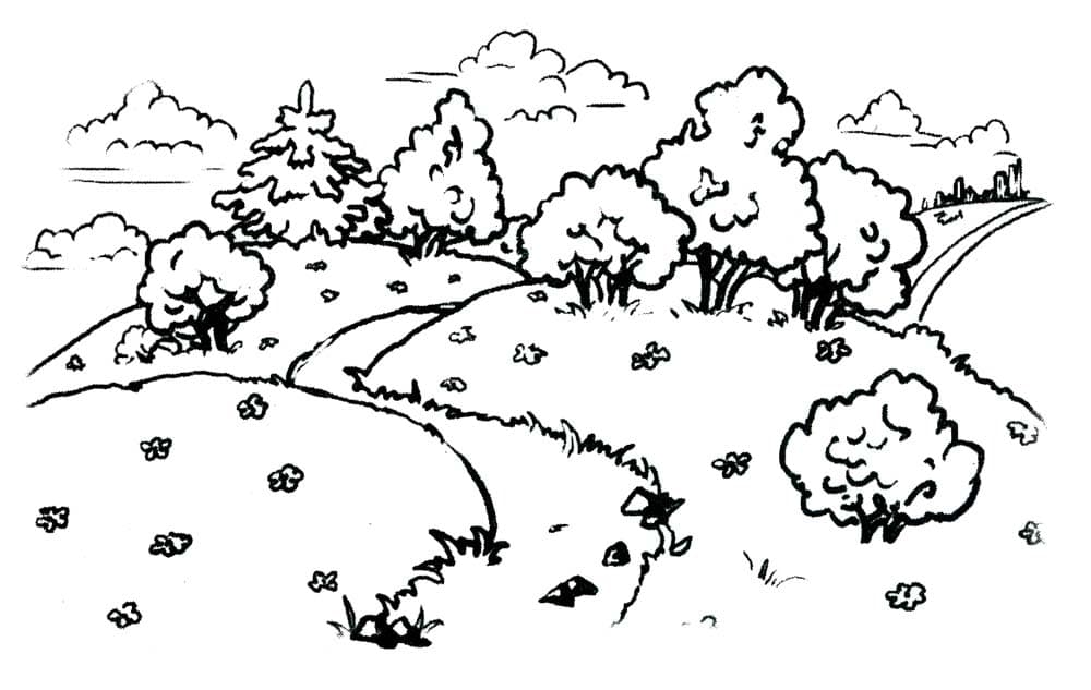 Любую раскраску можно распечатать бесплатно "Раскраска Летний пейзаж". Категория: