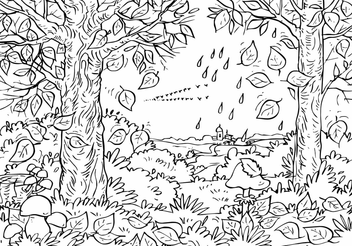 Любую раскраску можно распечатать бесплатно "Раскраски Осенний пейзаж". Категория: