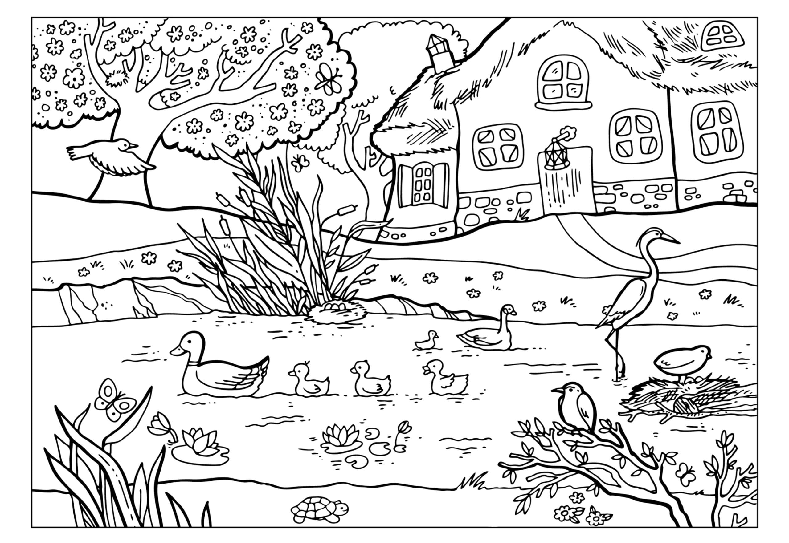 Любую раскраску можно распечатать бесплатно "Раскраска Пруд". Категория: