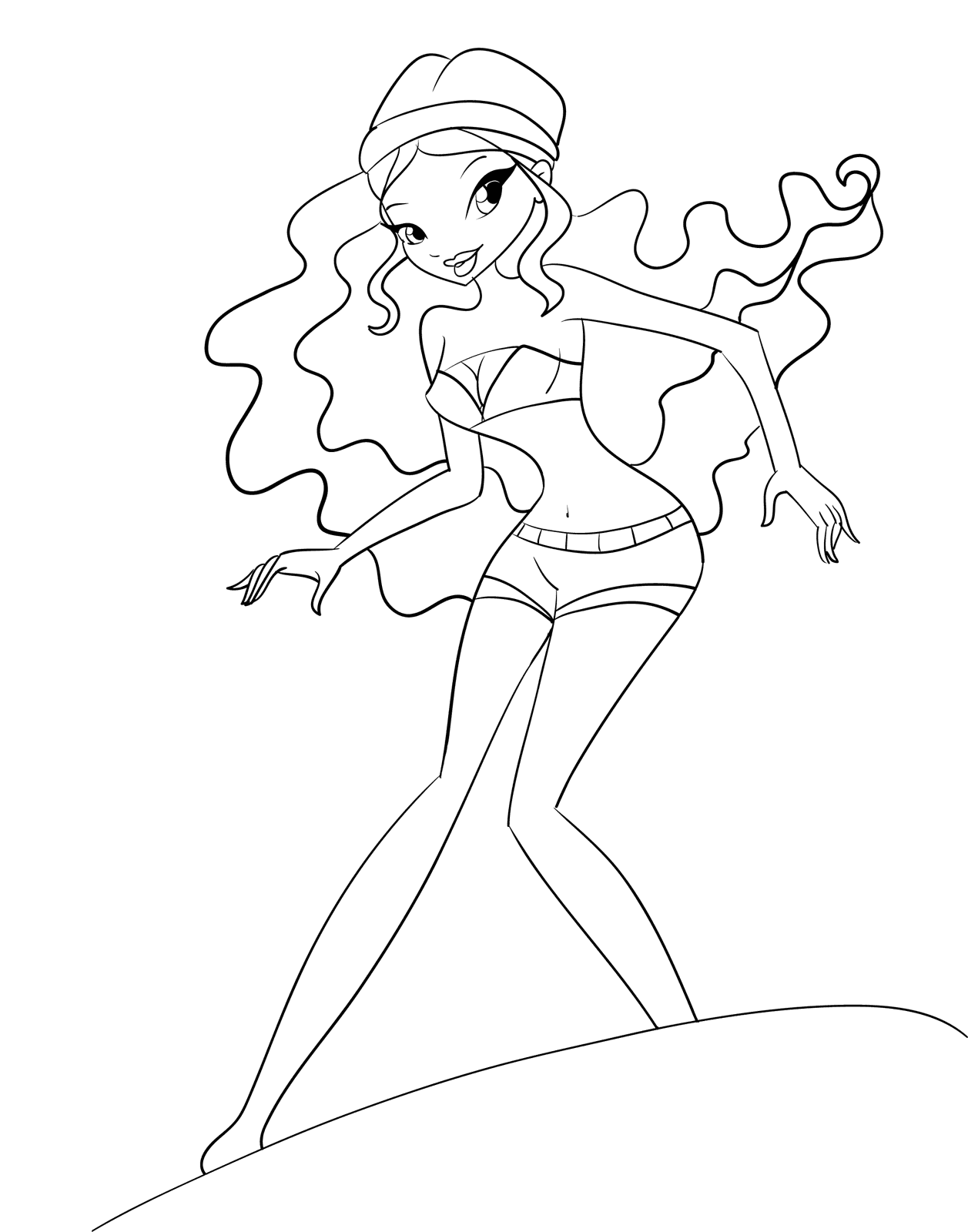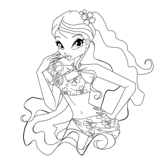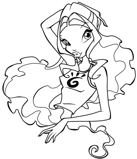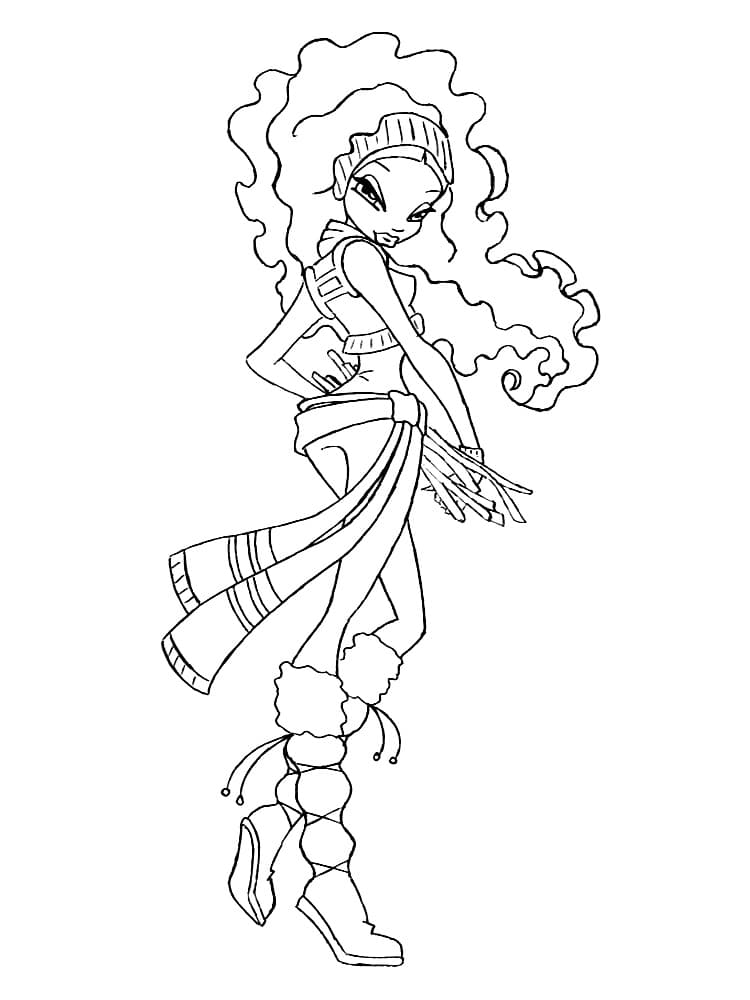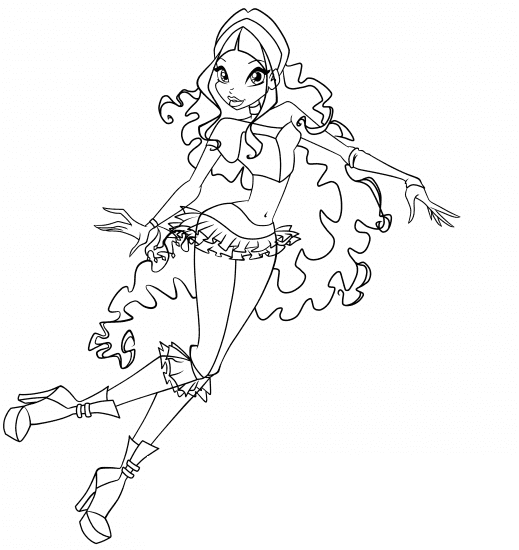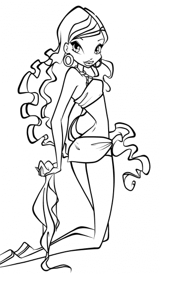 Наследная принцесса Лейла (Принцесса Айша в некоторых версиях) - это фея волн. Она-Наследная Принцесса Андроса, а также его фея-хранительница. Лейла присоединяется к клубу Винкс в качестве его шестого члена во втором сезоне, и она является выпускницей колледжа Фей Алфеи. Лейла - уверенная в себе и талантливая спортсменка, которая преуспевает в танцах и плавании. Лейла -темнокожая девушка со средним коричневым цветом лица, длинными вьющимися каштановыми волосами цвета красного дерева и лазурными глазами. В 8 сезоне волосы Лейлы становятся немного рыжее из-за обновленной графики. На этой странице вы можете бесплатно скачать и распечатать раскраску Винкс Лейла.
