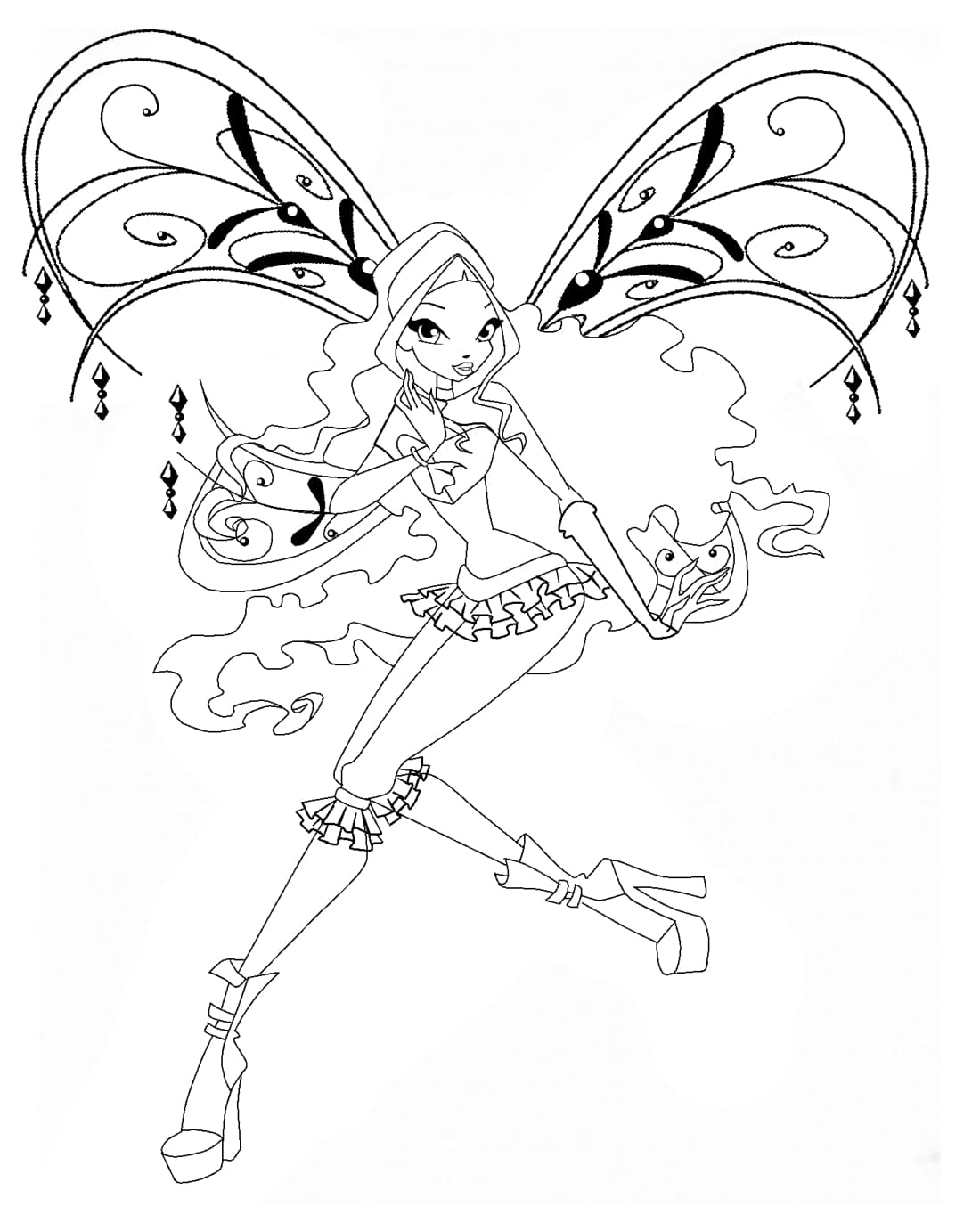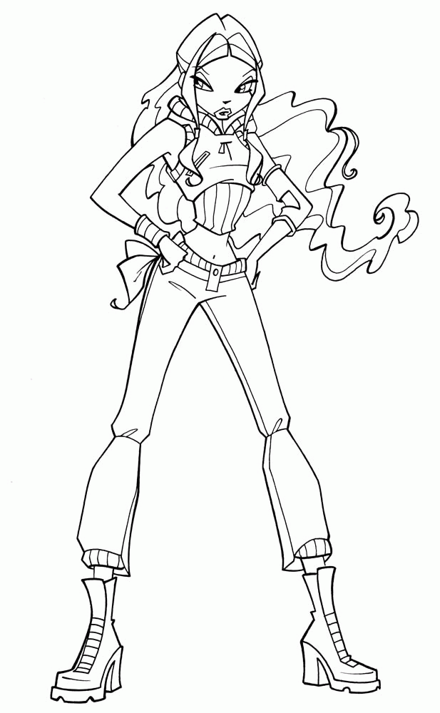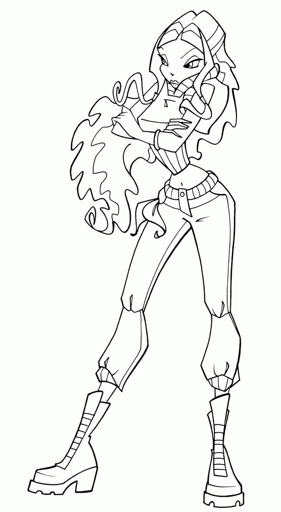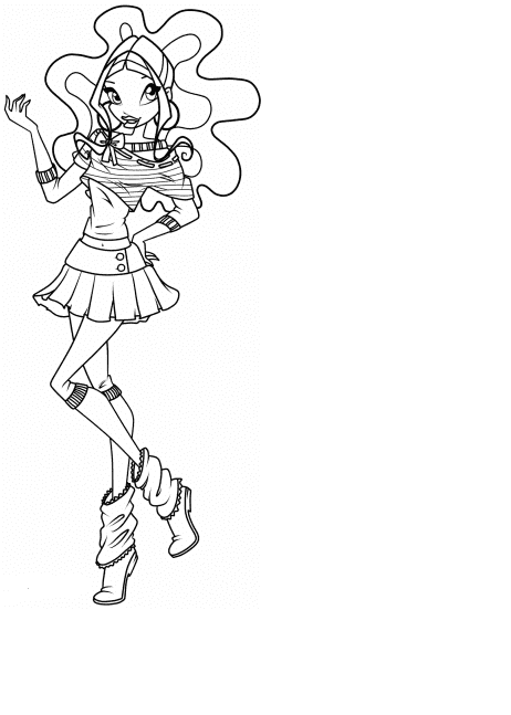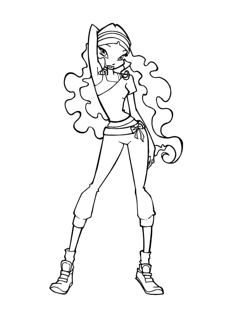 Наследная принцесса Лейла (Принцесса Айша в некоторых версиях) - это фея волн. Она-Наследная Принцесса Андроса, а также его фея-хранительница. Лейла присоединяется к клубу Винкс в качестве его шестого члена во втором сезоне, и она является выпускницей колледжа Фей Алфеи. Лейла - уверенная в себе и талантливая спортсменка, которая преуспевает в танцах и плавании. Лейла -темнокожая девушка со средним коричневым цветом лица, длинными вьющимися каштановыми волосами цвета красного дерева и лазурными глазами. В 8 сезоне волосы Лейлы становятся немного рыжее из-за обновленной графики. На этой странице вы можете бесплатно скачать и распечатать раскраску Винкс Лейла.