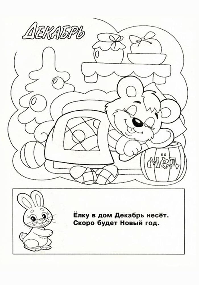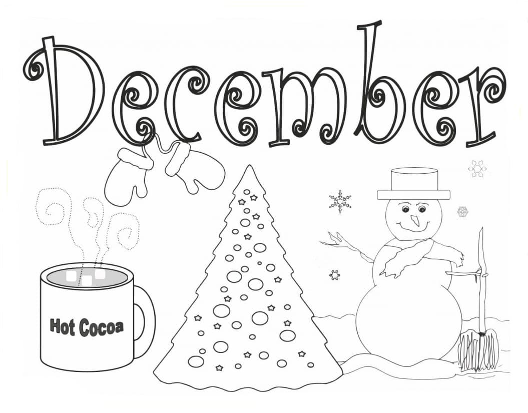 Название декабрь происходит от латинского слова "decem", означающего десять. По римскому календарю декабрь был 10-м месяцем. Однако Нума Помпилий скорректировал календарь, когда были добавлены январь и февраль. Декабрь стал двенадцатым месяцем, и календарь более точно отражал продолжительность земного года. В течение декабря зимнее солнцестояние склоняет Северное полушарие на самое дальнее расстояние от солнца. В течение большей части месяца жители Северного полушария теряют около 2 минут солнечного света в день до зимнего солнцестояния. Зимнее солнцестояние знаменует собой астрологический знак зимы и самый короткий день в календаре. Однако с этого дня дни будут медленно удлиняться. Они не могут быть теплее, но земля наклоняется вокруг своей оси назад к Солнцу. На нашем сайте Вы можете бесплатно скачать и распечатать раскраску месяца декабрь.