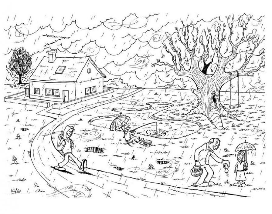 Золотая осень - пора года, когда все вокруг становится желтым и кажется что вокруг все усеяно золотом. Листья падают с деревьев, начинаются дожди и похолодания. Дети в это время года могут прыгать в горы листьев или собирать гербарии из опавших листьев. Золотая осень - очень красивое время года, которым вдохновляются многие художники при написании своих картин. На нашем сайте Вы совершенно бесплатно можете скачать и распечатать раскраску золотая осень в хорошем качестве.