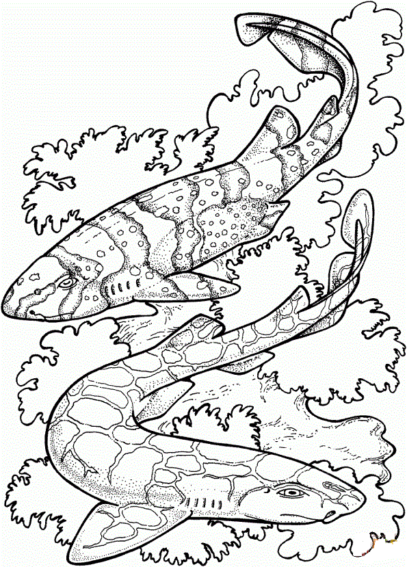 Акула, один из многочисленных видов хрящевых рыб хищного облика, составляющих отряд Selachii. Акулы напоминают обычных рыб веретенообразной формой тела и расположением жаберных щелей по обе стороны головы. Хотя есть исключения, акулы обычно имеют жесткую кожу тускло-серого цвета и шероховатую зубчатую чешую. Они также обычно имеют мускулистый, асимметричный, вздернутый хвост, заостренные плавники и заостренную морду, выступающую вперед и над крестообразным ртом, усаженным острыми треугольными зубами. У акул нет плавательного пузыря, и они должны постоянно плавать, чтобы не опуститься на дно. На нашем сайте Вы совершенно бесплатно можете скачать и распечатать раскраску акула в хорошем качестве.