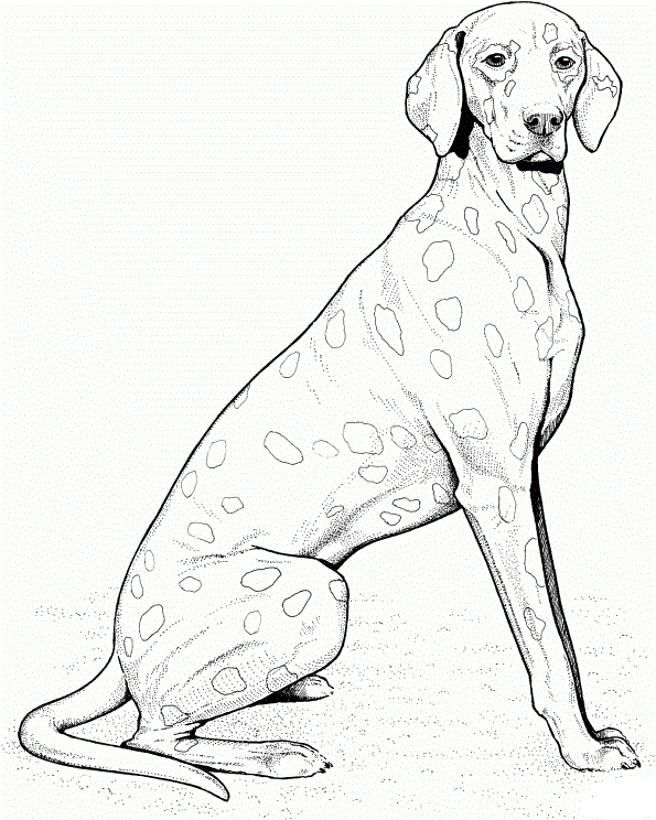 Далматин, порода собак, названная в честь Адриатического прибрежного региона Далмации, Хорватия, его первого определенного дома. Происхождение этой породы неизвестно. Далматинец служил стражем, боевой собакой, талисманом пожарной команды, охотником, пастухом и исполнителем. Однако больше всего она известна как Каретная собака, выполняющая функции эскорта и охраны для конных повозок. Гладкая, симметрично сложенная, короткошерстная собака, далматинец характеризуется своей темно-пятнистой белой шерстью. Щенки рождаются белыми, и пятна развиваются через несколько недель после рождения. Далматинец имеет рост от 48 до 58 см и весит от 23 до 25 кг. В общем, он уравновешенный и дружелюбный. На нашем сайте Вы совершенно бесплатно можете скачать и распечатать раскраску далматинец в хорошем качестве.