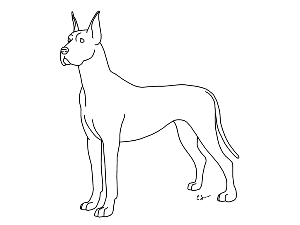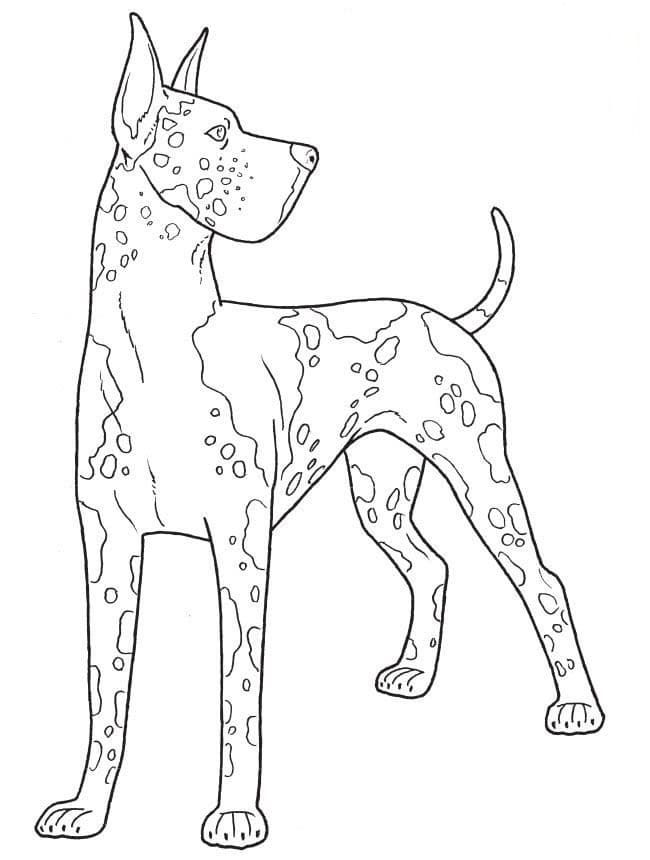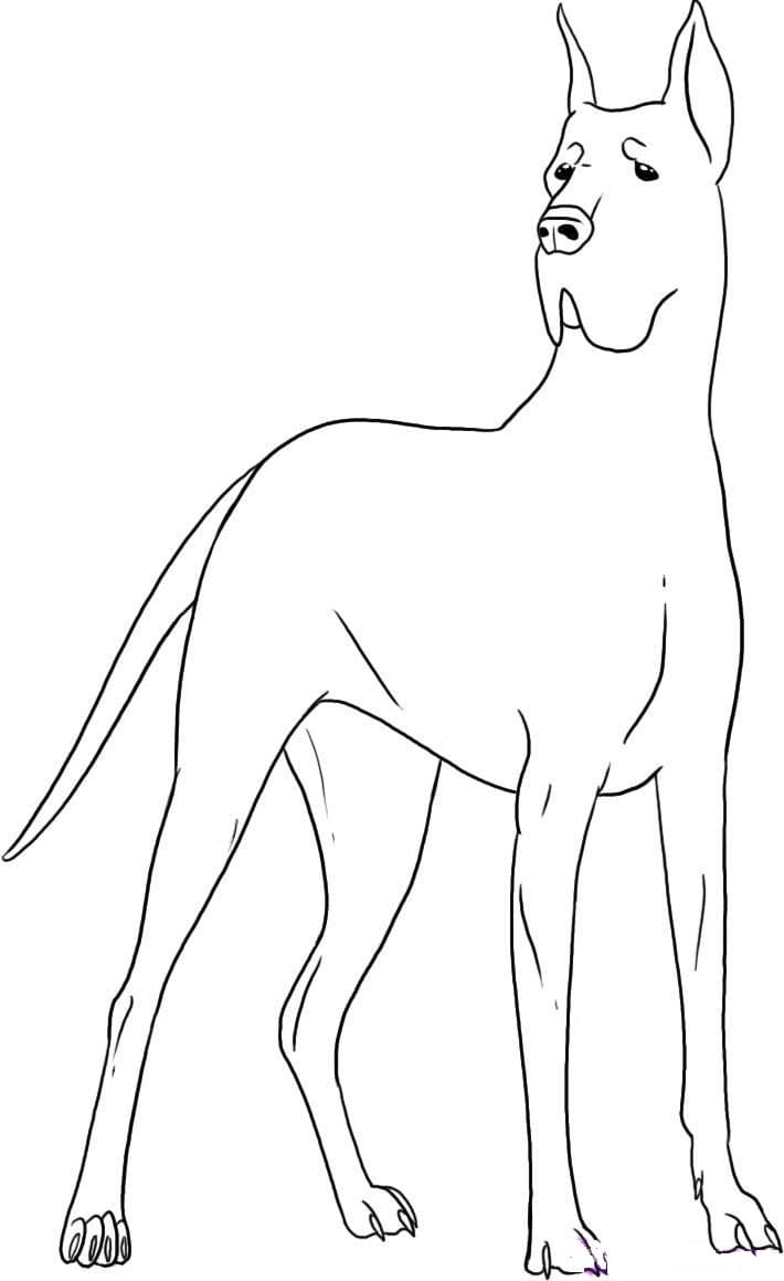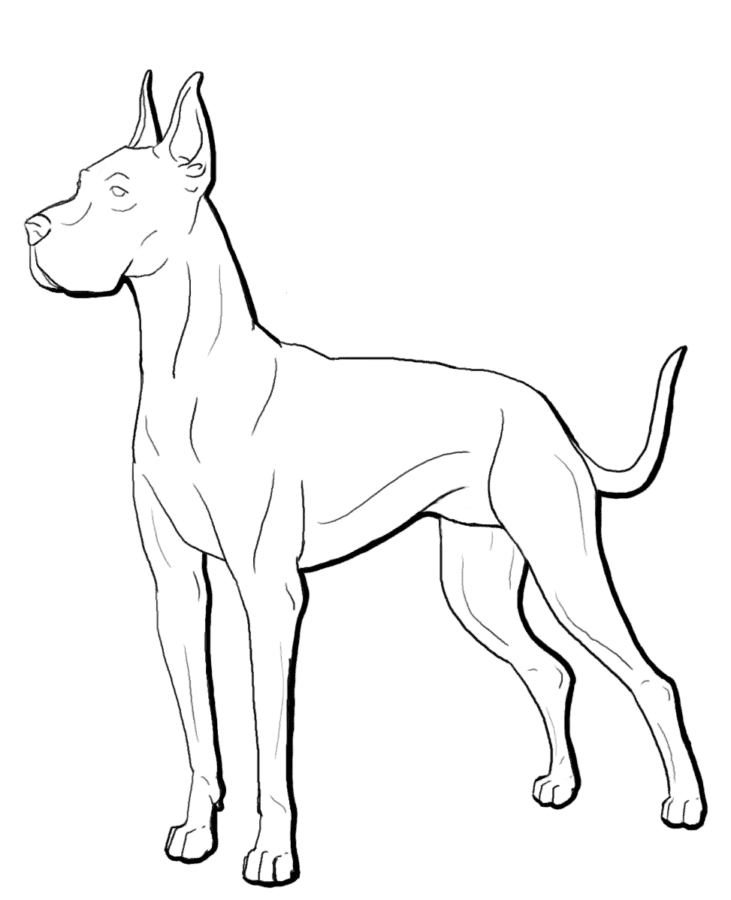 Дог, порода собаки, развивалась по меньшей мере 400 лет назад в Германии, где ее использовали для охоты на кабанов. Датский дог - это обычно быстрая, бдительная собака, отличающаяся храбростью, дружелюбием и надежностью. У него массивная квадратная челюсть и линии тела, которые придают ему элегантный внешний вид. Его короткая шерсть черная, палевая (золотисто-коричневая), тигровая, сине-серая, арлекиновая (белая с черными пятнами) или мантия (белая с черным “одеялом”, простирающимся по телу). Дог-самая высокая из охотничьих пород, самцы которой стоят не менее 76 см, а самки-не менее 71 см; он весит от 54 до 68 кг. Его название произошло от одного из его французских названий, Grand Danois (большой датчанин), хотя нет никаких известных причин связывать Данию с историей или происхождением этой породы. В Германии эта порода называется немецкий дог (немецкий дог). На нашем сайте Вы совершенно бесплатно можете скачать и распечатать раскраску дог в хорошем качестве.