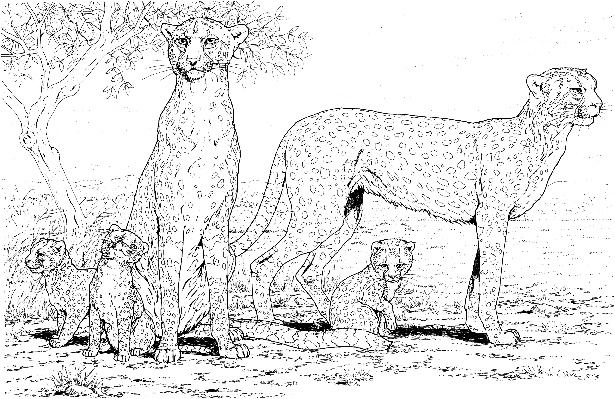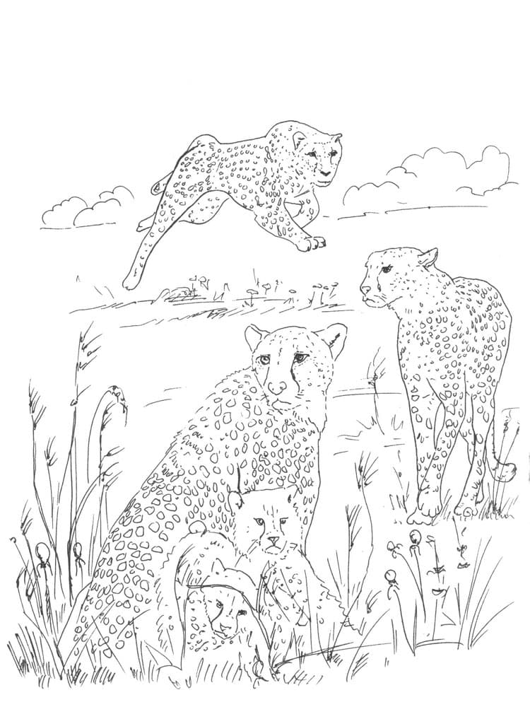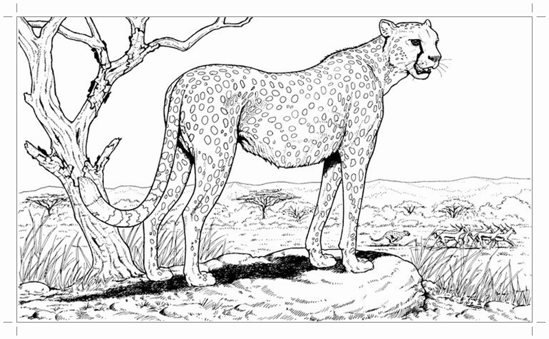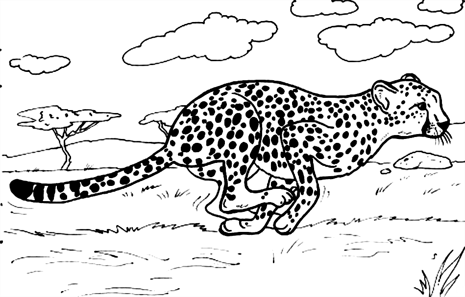 Гепард, одна из самых узнаваемых кошек в мире, известная особенно своей скоростью. Спринты гепардов измерялись на максимуме 114 км в час, и они обычно достигают скорости 80-100 км в час, преследуя добычу. Почти все гепарды, оставшиеся в дикой природе, живут в Африке. Гепарды почти полностью покрыты мелкими черными пятнышками на бледно-желтом фоне и имеют белое подбрюшье. Их лица отличаются заметными черными линиями, которые изгибаются от внутреннего уголка каждого глаза к внешним уголкам рта, как хорошо вытертый след чернильных слез. Гепарды имеют длинное, тонкое тело размером 1,2 метра, с длинным хвостом 65-85 см, который обычно заканчивается белым пучком. Они около 75 см высотой в плече. Вес колеблется от 34 до 54 кг, причем самцы немного крупнее самок. На нашем сайте Вы совершенно бесплатно можете скачать и распечатать раскраску гепард в хорошем качестве.