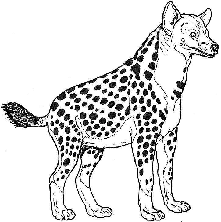 На этой странице мы добавили раскраску гиены в хорошем качестве. С её помощью ребенок сможет запомнить, как выглядит животное, а так же ощутит себя настоящим художником. Гиены питаются в основном падалью, но могут атаковать домашний скот, ограбить магазины и даже напасть на человека. Даже племена масайев презирают гиен за такое поведение, хотя у них принято уважительно к ним относится. На нашем сайте Вы совершенно бесплатно можете скачать и распечатать раскраску гиена в хорошем качестве. Трафарет может подойти для вырезания и создания аппликаций.