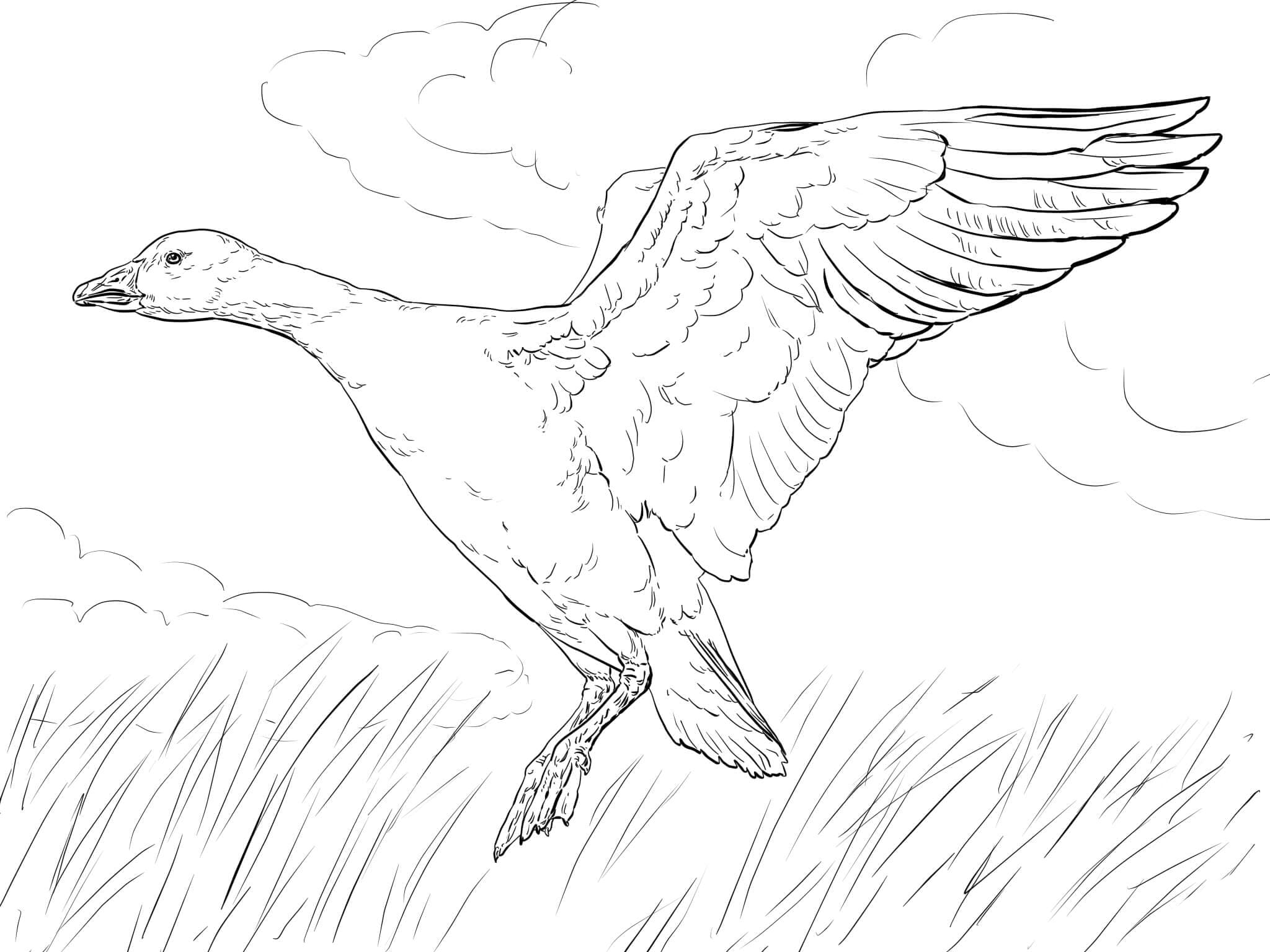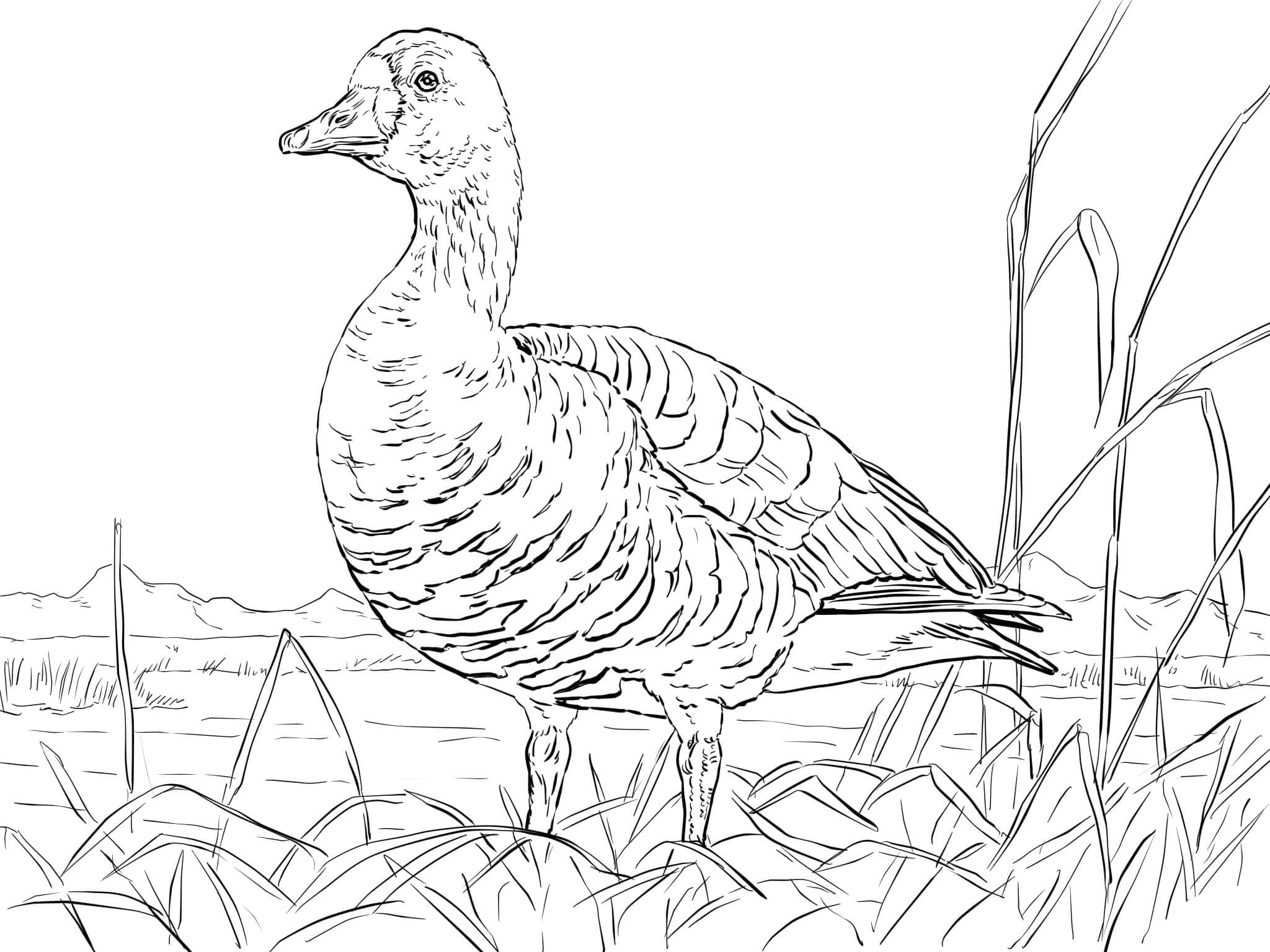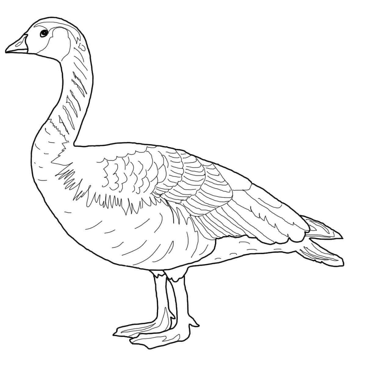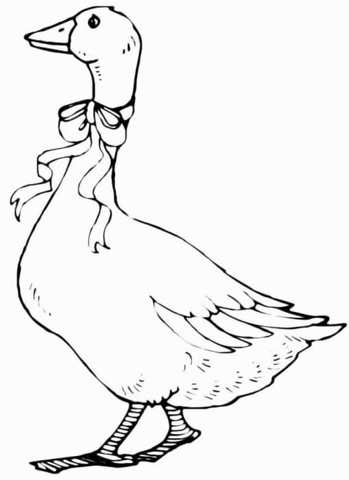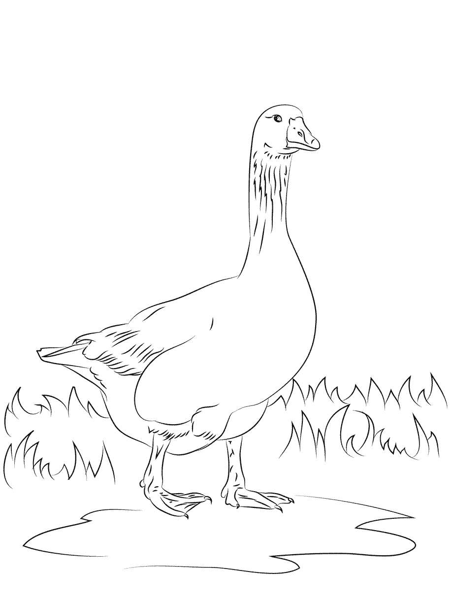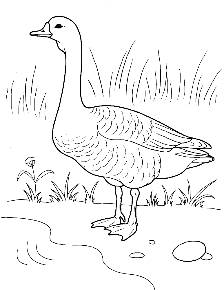 Гусь, одна из различных крупных тяжеловесных водоплавающих птиц, промежуточных по размерам и строению между крупными утками и лебедями, особенно из родов Anser (так называемые серые гуси) и Branta (черные гуси) в семействе птиц Anatidae. Эти роды, связанные главным образом с пресной водой и живущие в Северном полушарии, включают канадского гуся, белолобых гусей, усоногого гуся и снежного гуся, а также Брант и Нене. Окраска полов одинакова, хотя самцы обычно крупнее самок. Шея всегда короче тела. Клюв горбится у основания и сужается к кончику; пластинки клюва приспособлены для захвата осоки и травы, которыми питаются гуси. На нашем сайте Вы совершенно бесплатно можете скачать и распечатать раскраску гусь в хорошем качестве.