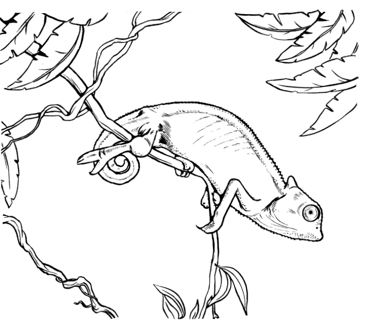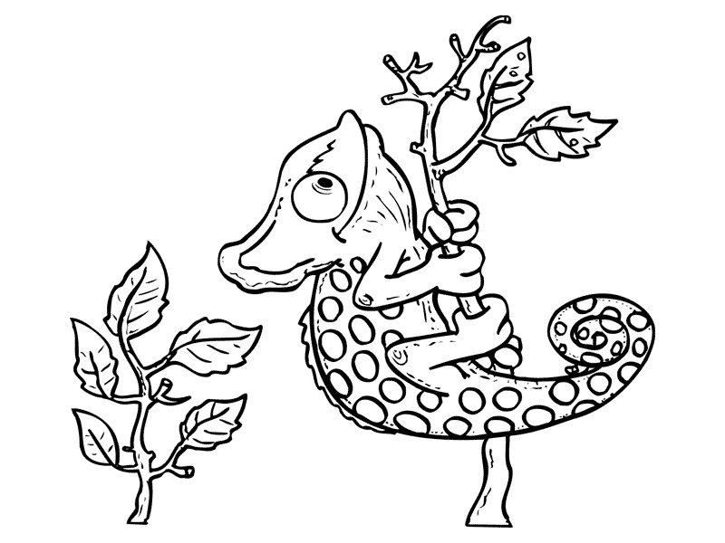 Хамелеон, один из группы преимущественно древесных (древесно-обитающих) ящериц Старого Света, наиболее известных своей способностью изменять окраску тела. Другие характеристики хамелеонов включают зигодактильные ступни (с пальцами, сросшимися в противоположные пучки по два и три), акродонтовые зубные ряды (с зубами, прикрепленными к краю челюсти), независимо движущиеся глаза, атрофированные ядовитые железы, которые производят яд для незначительного количества повреждений, и длинный, тонкий язык снаряда. Это название также применяется для обозначения ложного хамелеона, или анола, ящерицы Нового Света рода Anolis. На нашем сайте Вы совершенно бесплатно можете скачать и распечатать раскраску хамелеон в хорошем качестве.