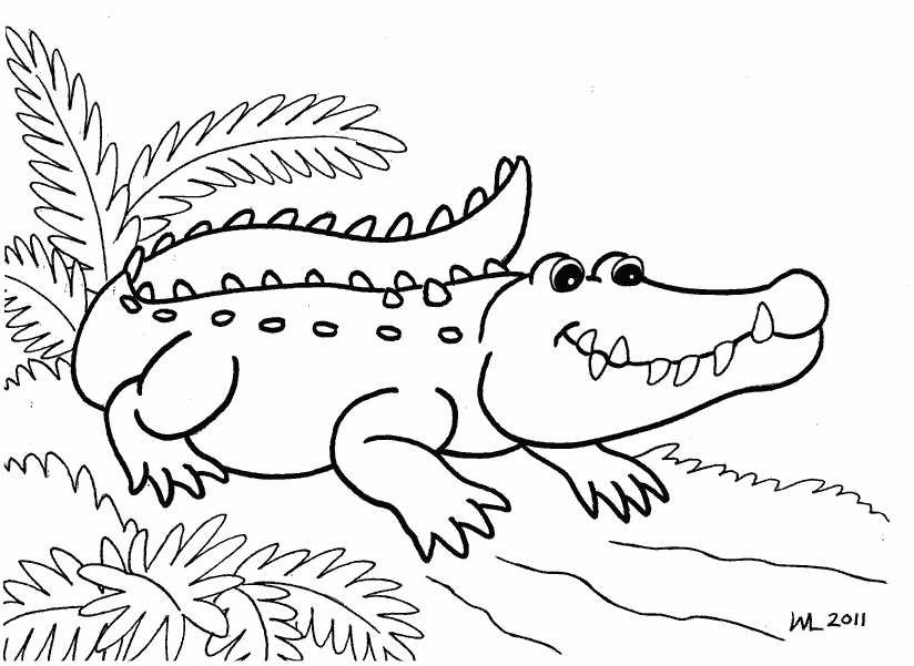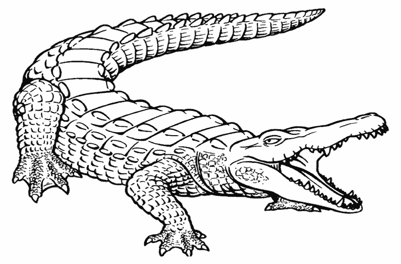 Крокодил, любой из 23 видов обычно крупных, тяжеловесных, земноводных животных ящероподобной внешности и плотоядных повадок, принадлежащих к рептильному порядку Crocodylia. Крокодилы имеют мощные челюсти с множеством конических зубов и короткие ноги с когтистыми перепончатыми пальцами. У них есть уникальная форма тела, которая позволяет глазам, ушам и ноздрям находиться над поверхностью воды, в то время как большая часть животного скрыта под водой. Хвост длинный и массивный, а кожа толстая и покрытая лаком. На нашем сайте Вы совершенно бесплатно можете скачать и распечатать раскраску крокодил в хорошем качестве.