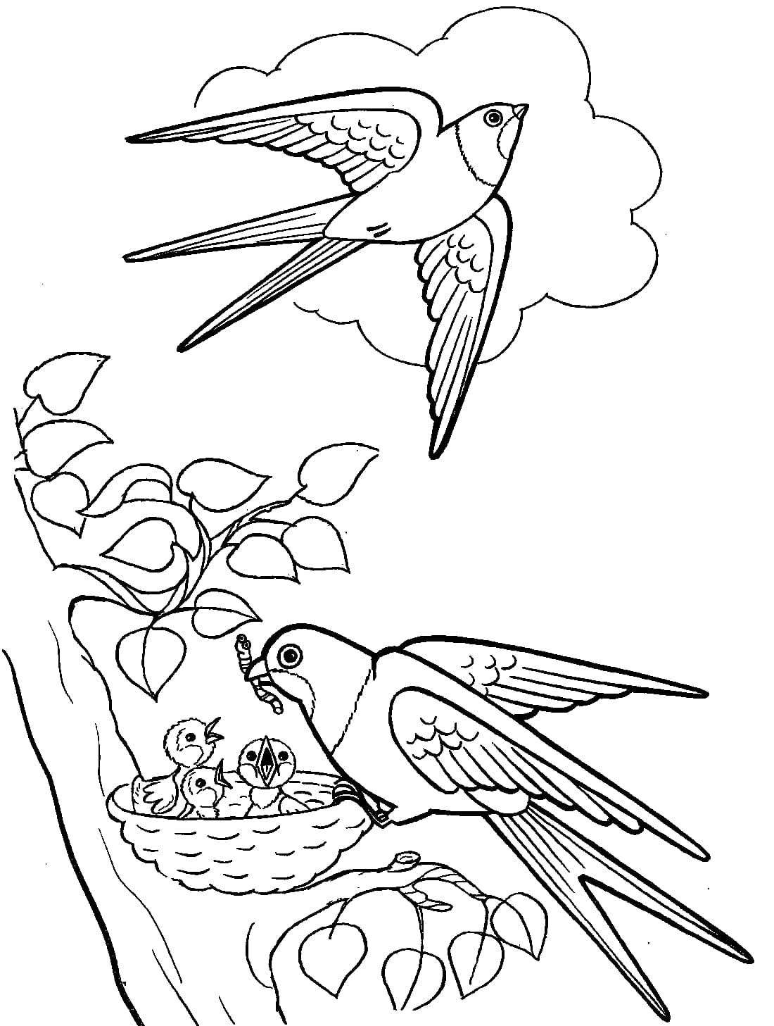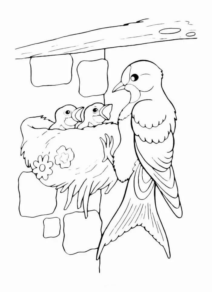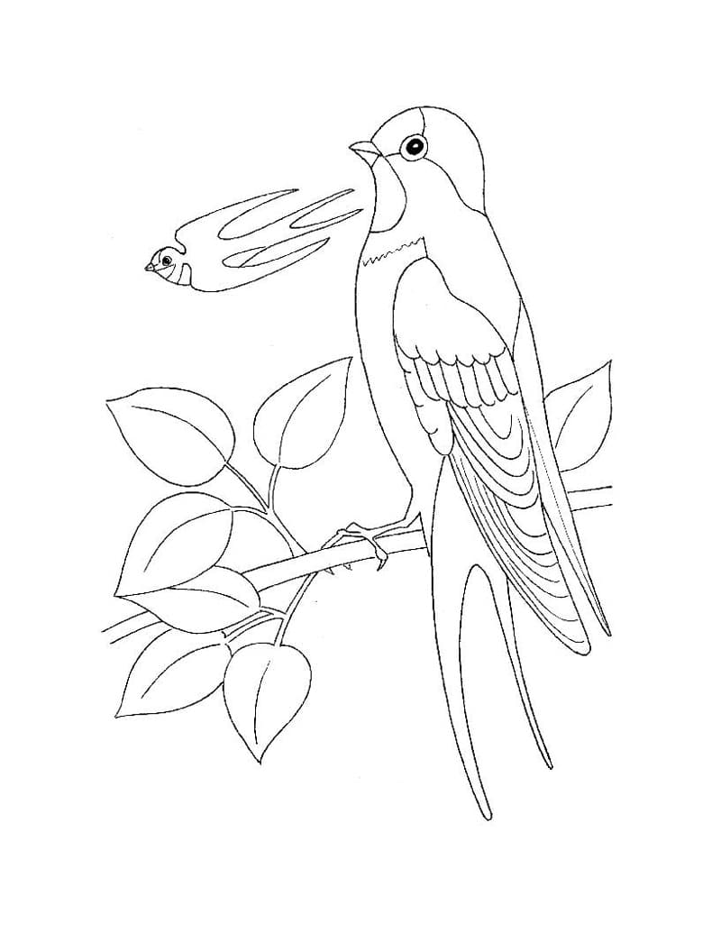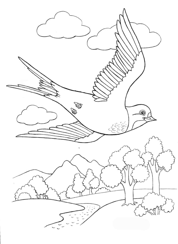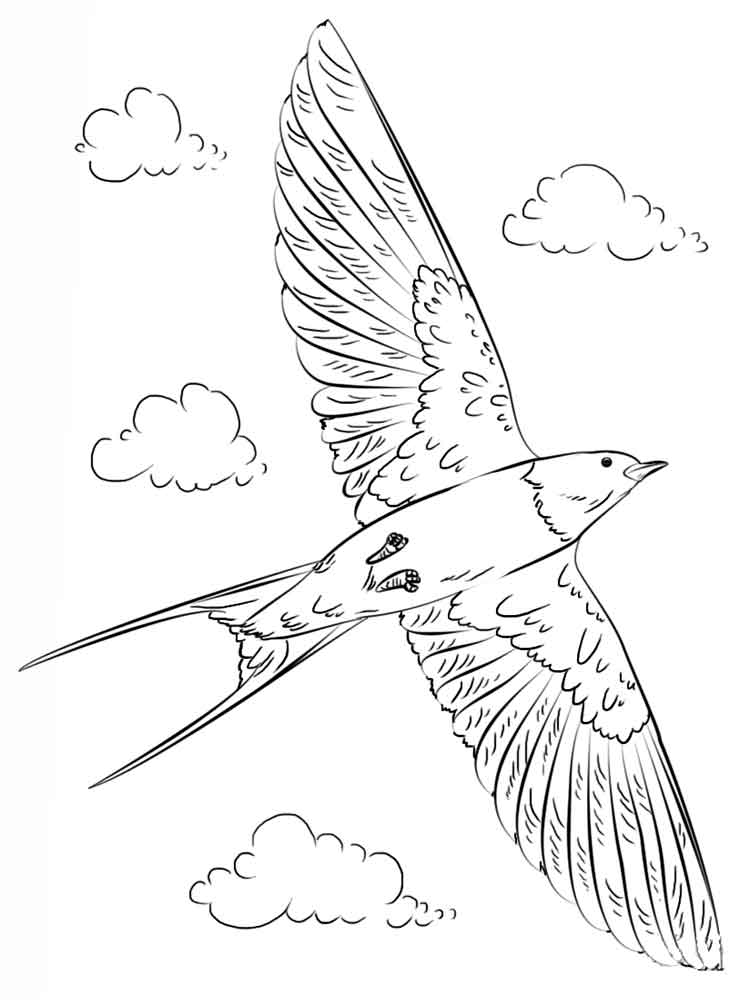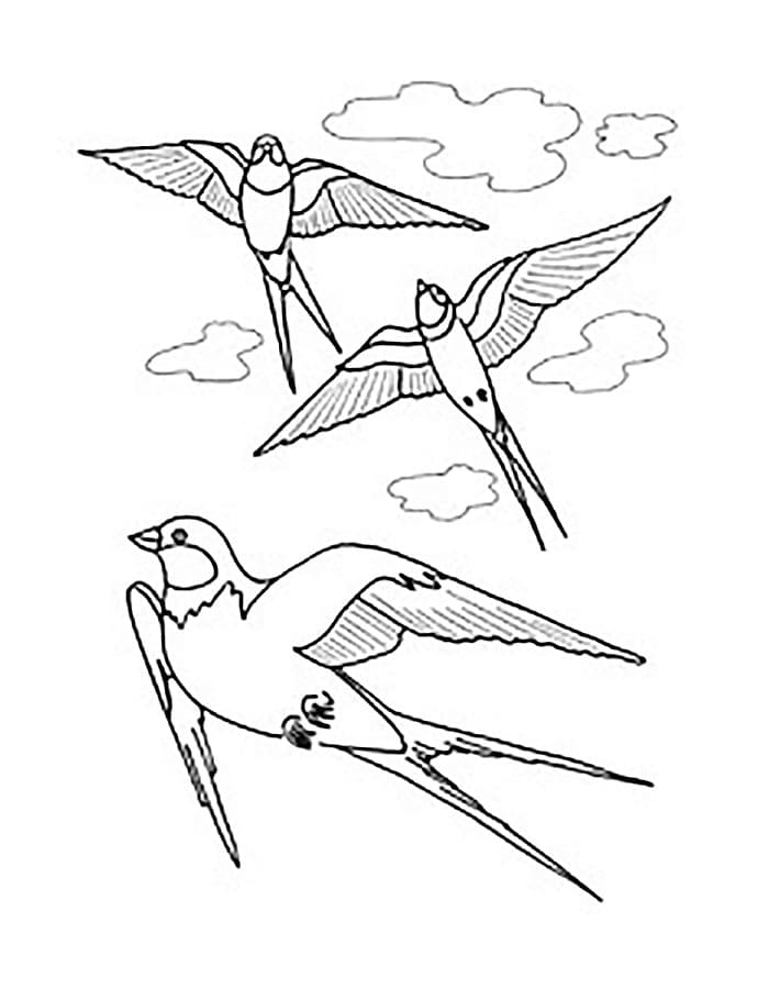 Ласточка, один из примерно 90 видов птиц семейства Hirundinidae. Ласточки маленькие, с заостренными узкими крыльями, короткими клювами и маленькими слабыми лапками; некоторые виды имеют раздвоенные хвосты. Оперение может быть однотонным или отмечаться металлическим синим или зеленым цветом; у большинства видов пол выглядит одинаково. Ласточки проводят много времени в воздухе, ловя насекомых; они являются одними из самых проворных воробьиных птиц. Для гнездования Ласточки могут использовать отверстие или трещину в дереве, нору в песчаной отмели или штукатурную грязь на стене или выступе, чтобы разместить от трех до семи белых, иногда крапчатых яиц. На нашем сайте Вы совершенно бесплатно можете скачать и распечатать раскраску ласточка в хорошем качестве.