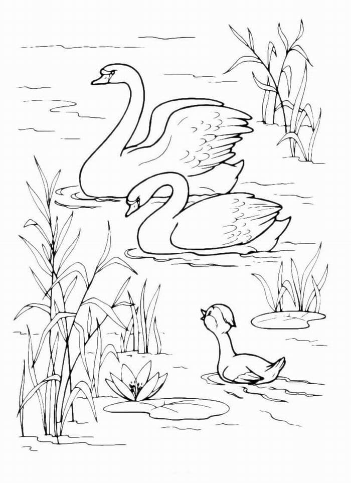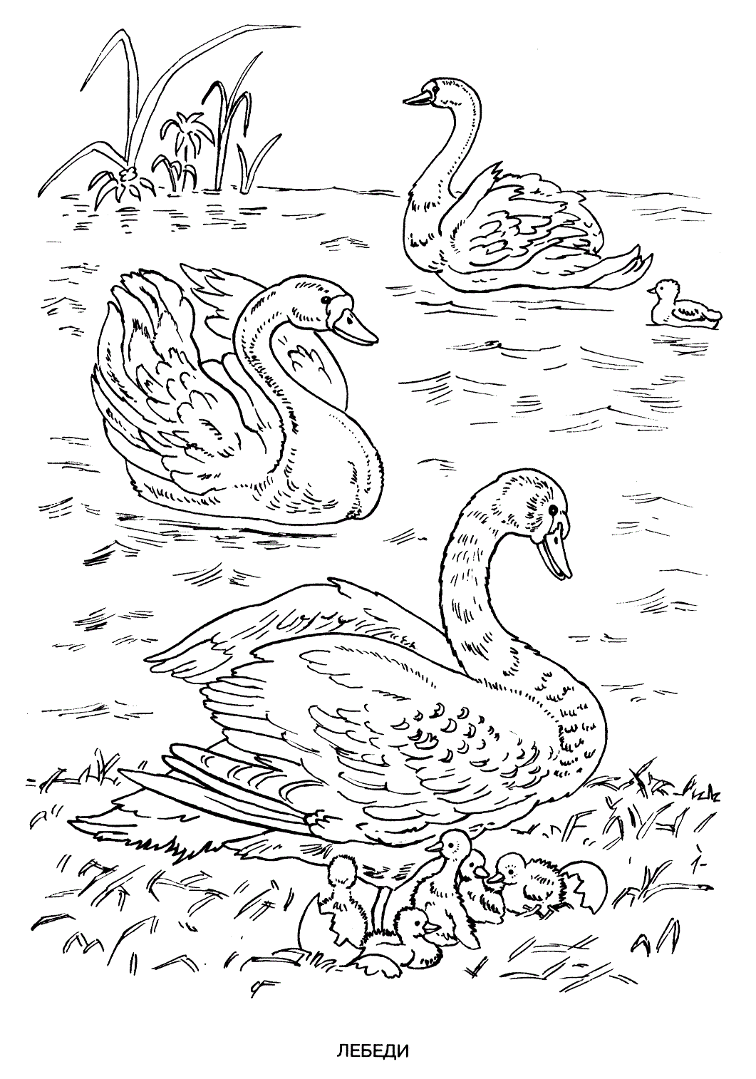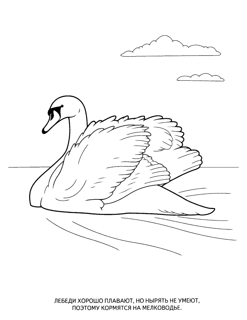 Любую раскраску можно распечатать бесплатно "Раскраска Лебедь". Категория: