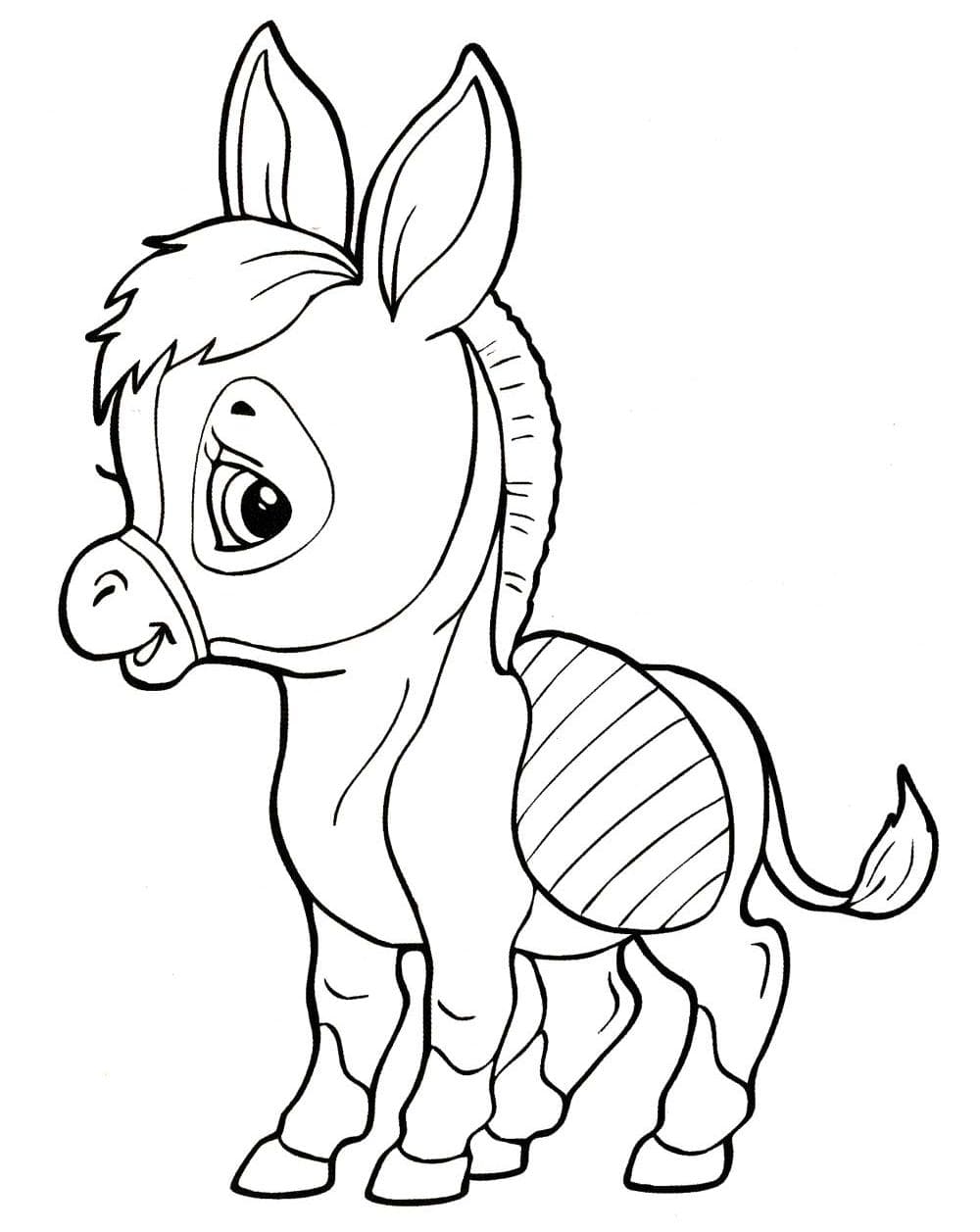 Осел, принадлежащий к семейству лошадей Equidae и происходящий от африканского дикого осла. Известно, что он использовался в качестве вьючного животного с 4000 года до нашей эры. Средний осел стоит 101,6 см в плече, но разные породы сильно различаются. По окрасу осел колеблется от белого до серого или черного и обычно имеет темную полосу от гривы до хвоста и поперечную полосу на плечах. Грива короткая и прямая, а хвост с длинными волосками только на конце больше похож на коровий, чем на лошадиный. Очень длинные уши темные у основания и кончика. Несмотря на то, что они медленнее лошадей, ослы уверенно передвигаются и могут нести тяжелые грузы по пересеченной местности. На нашем сайте Вы совершенно бесплатно можете скачать и распечатать раскраску осел в хорошем качестве.