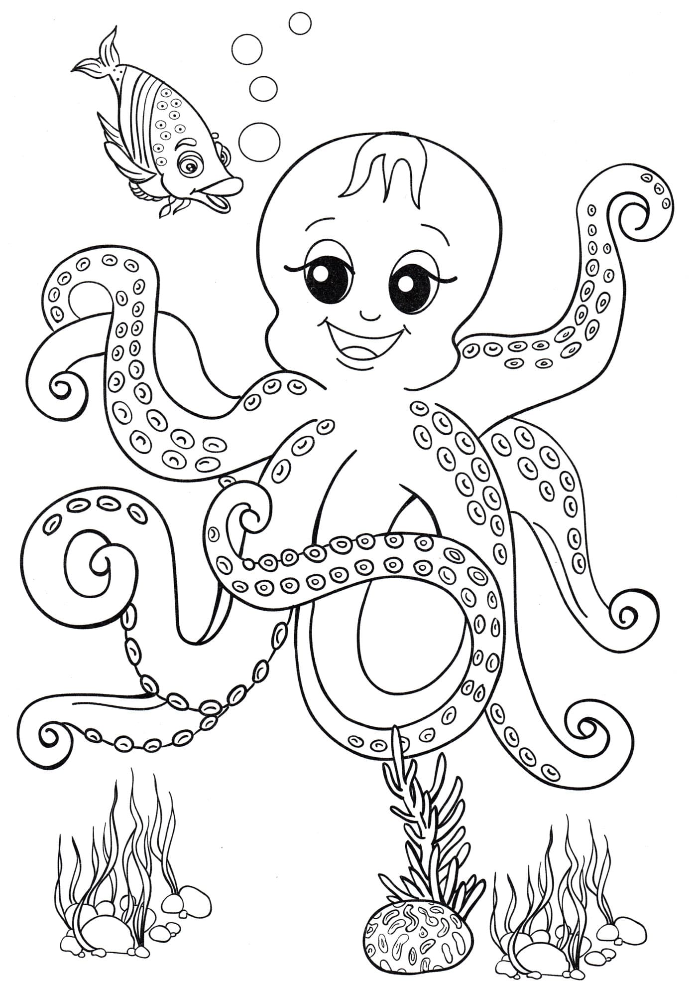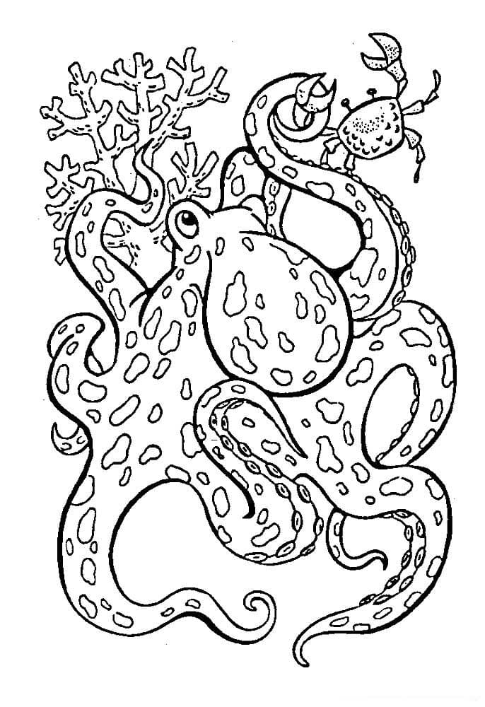 Осьминог - морской обитатель с щупальцами, которыми он захватывает добычу, так же с их помощью он перемещается. С помощью раскраски ребенок сможет запомнить как выглядит осьминог и почувствует себя настоящим художником. Ученые доказали, что процесс раскрашивания картинок положительно влияет на развитие мозга ребенка, а так же развивает усидчивость и терпеливость. На нашем сайте Вы совершенно бесплатно можете скачать и распечатать раскраску осьминог в хорошем качестве. Трафарет осьминога может подойти для создания аппликации подводного мира.