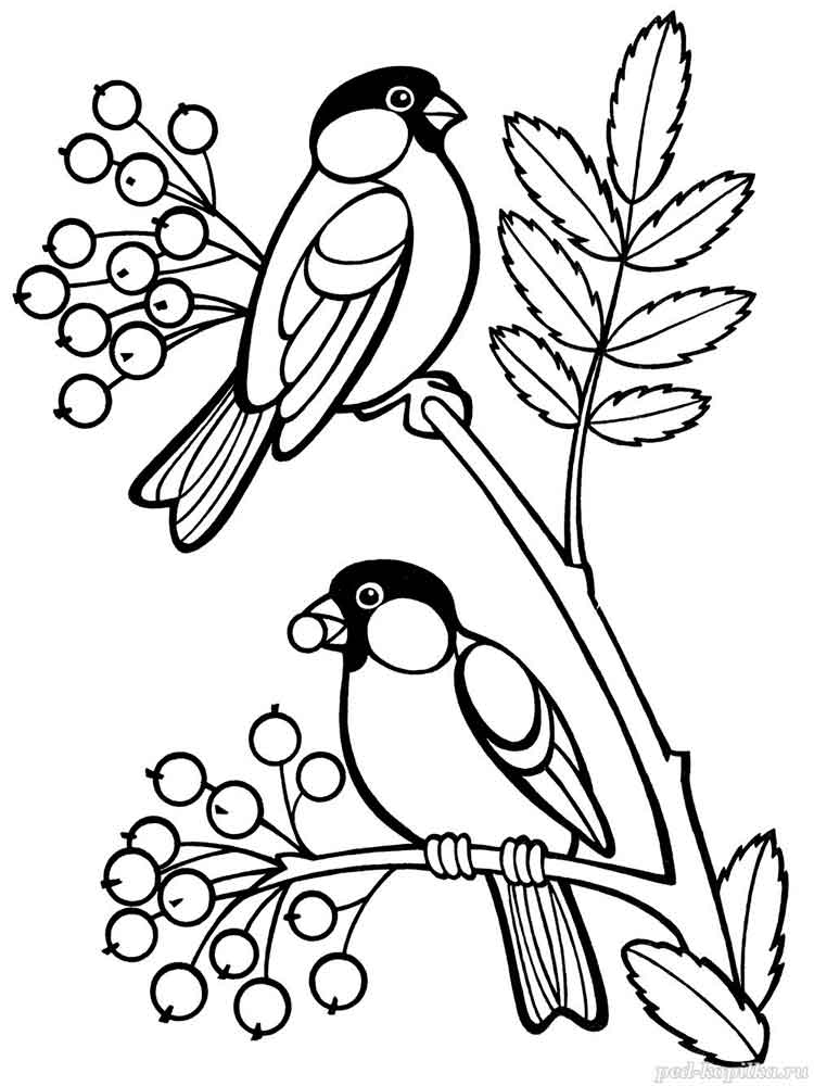 Снегирь, любая из нескольких коренастых толстоклювых певчих птиц семейств Fringillidae и Emberizidae. В Евразии насчитывается шесть видов рода Pyrrhula. Обыкновенный снегирь, длиной 15 см, черно-белый, а самец имеет розовато-оранжевую нижнюю сторону. Этот вид, обычно встречающийся в вечнозеленых рощах и живых изгородях, обладает мягким трелевочным зовом; это популярная птица в клетке. Трубач-Снегирь из засушливых местностей от Канарских островов до Индии-это бледная птица, омытая розовым цветом; у нее есть ревущая жужжащая нота. Большинство снегирей являются fringillids; однако Карибские виды, которые относятся к родам Melopyrrha и Loxigilla, классифицируются в семействе Emberizidae. На нашем сайте Вы совершенно бесплатно можете скачать и распечатать раскраску снегирь в хорошем качестве.