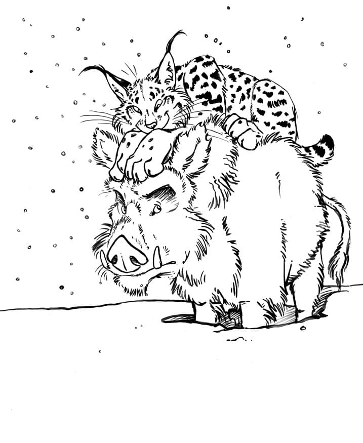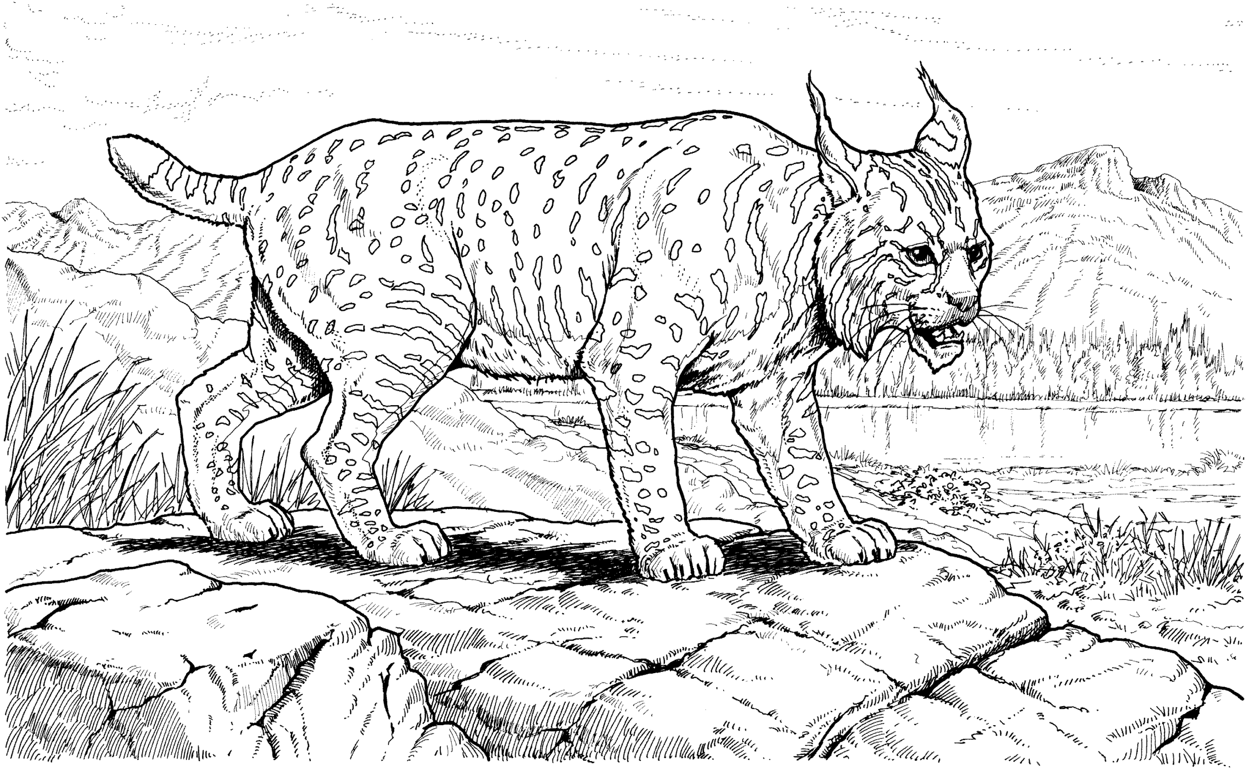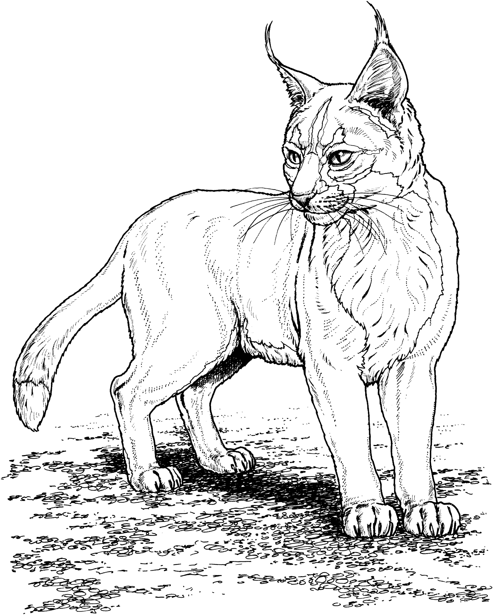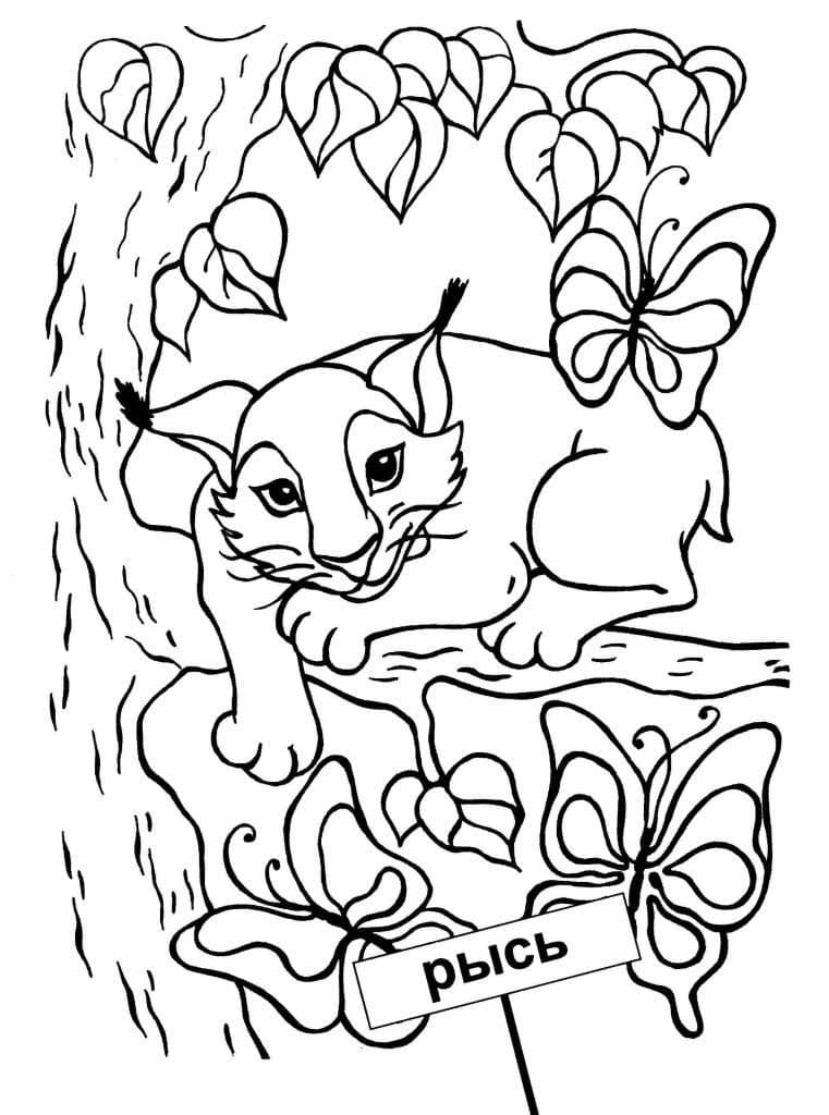 Рысь-один из четырех видов короткохвостых кошек, обитающих в лесах Европы, Азии и Северной Америки. Канадская рысь и рысь обыкновенная живут в Северной Америке. Евразийская рысь и иберийская рысь являются их европейскими аналогами. Иберийская рысь является самой опасной кошкой; по состоянию на 2013 год, в горных зарослях южной Испании осталось менее 300 особей. Рыси-это длинноногие, крупнолапые кошки с хохлатыми ушами, волосатыми подошвами и широкой короткой головой. Шерсть, которая образует пушистый ерш на шее, рыжевато-кремового цвета и несколько испещрена коричневыми и черными пятнами; кончик хвоста и пучки ушей черные. Зимой мех густой и мягкий, с волосками длиной до 10 см, и люди ищут его для пошива одежды. Большинство рысей имеют размер от 80 до 120 см в длину, без хвоста. Вес обычно колеблется от 10 до 20 кг, хотя Евразийские рыси часто бывают крупнее. У всех видов самцы крупнее самок. На нашем сайте Вы совершенно бесплатно можете скачать и распечатать раскраску рысь в хорошем качестве.