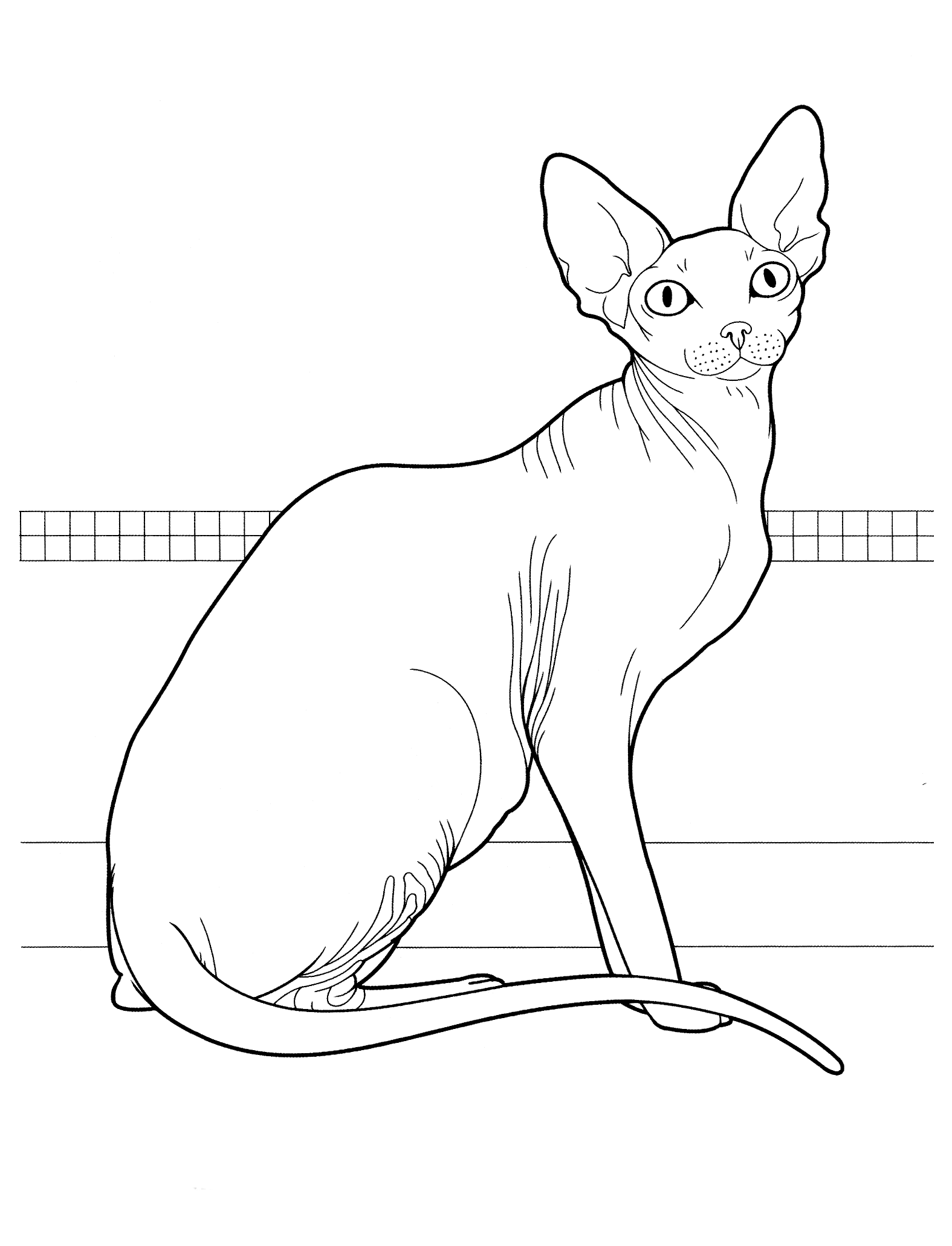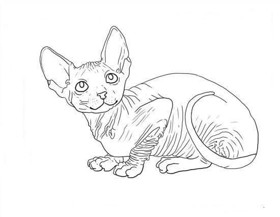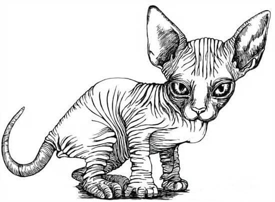 Кошка сфинкс, порода безволосых домашних кошек, основана на двух спонтанных мутациях у короткошерстных кошек. Первый случай произошел в 1975 году, когда заблудившаяся Джезабель произвела на свет безволосого котенка-самку эпидермиса, а в следующем году-еще одного. Второй случай произошел в 1978 году, когда с улиц Торонто были спасены самец и две самки безволосых котят. Кошки сфинкса должны регулярно купаться, чтобы кожа не содержала масел, которые впитывает шерсть нормальной кошки, а очень большие уши должны регулярно очищаться, чтобы избавить их от пыли и грязи и предотвратить накопление воска. На нашем сайте Вы совершенно бесплатно можете скачать и распечатать раскраску сфинкс в хорошем качестве.