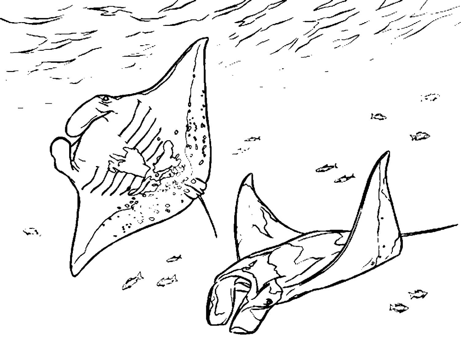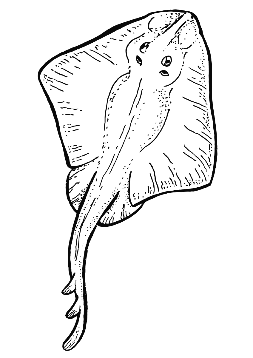 Скат-любой из множества плоскотелых скатов, отмеченных длинными острыми шипами на хвостах. Скаты имеют дискообразную форму и гибкие заостренные хвосты, вооруженные у большинства видов одним или несколькими пилообразными ядовитыми шипами. Дасьятидские скаты, также называемые хлыстохвостыми лучами и скатами, обитают во всех океанах и некоторых южноамериканских реках. У них тонкие, часто очень длинные, похожие на хлыст хвосты. Они различаются по размерам: Dasyatis sabina, небольшой западный Североатлантический вид, достигает зрелости при ширине около 25 см, но австралийский D. brevicaudata, как сообщается, достигает ширины около 2 метров и длины 4 метров. Уролофиды, или круглые скаты, значительно меньше,самые крупные достигают длины около 75 см. Круглые скаты имеют относительно короткие хвосты и хорошо развитые хвостовые плавники. Они встречаются в Тихом океане и Западной Атлантике. На нашем сайте Вы совершенно бесплатно можете скачать и распечатать раскраску скат в хорошем качестве.