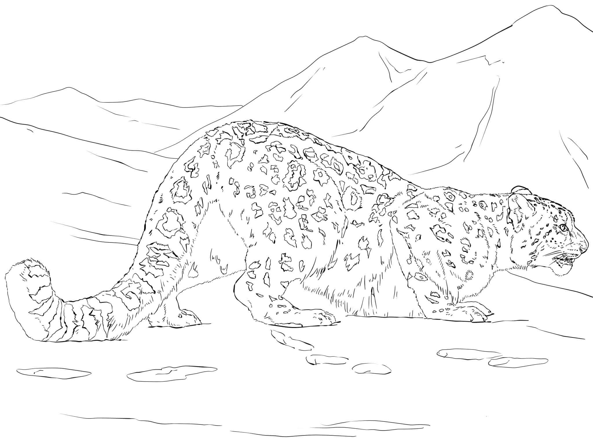 Снежный барс, большая длинношерстная Азиатская кошка, классифицируется как "Пантера унция" или "унция" в семействе кошачьих. Снежный барс обитает в горах Центральной Азии и Индийского субконтинента, начиная с высоты около 1800 метров зимой и заканчивая примерно 5500 метров летом. Его мягкая шерсть, состоящая из плотного изолирующего подшерстка и Толстого наружного слоя волосков длиной около 5 см, бледно-сероватая с темными пятнами и темной полосой вдоль позвоночника. Нижняя часть тела, на которой мех может быть длиной 10 см, равномерно беловатая. Снежный барс достигает длины около 2,1 метра, включая хвост длиной 0,9 метра. На нашем сайте Вы совершенно бесплатно можете скачать и распечатать раскраску снежный барс в хорошем качестве.