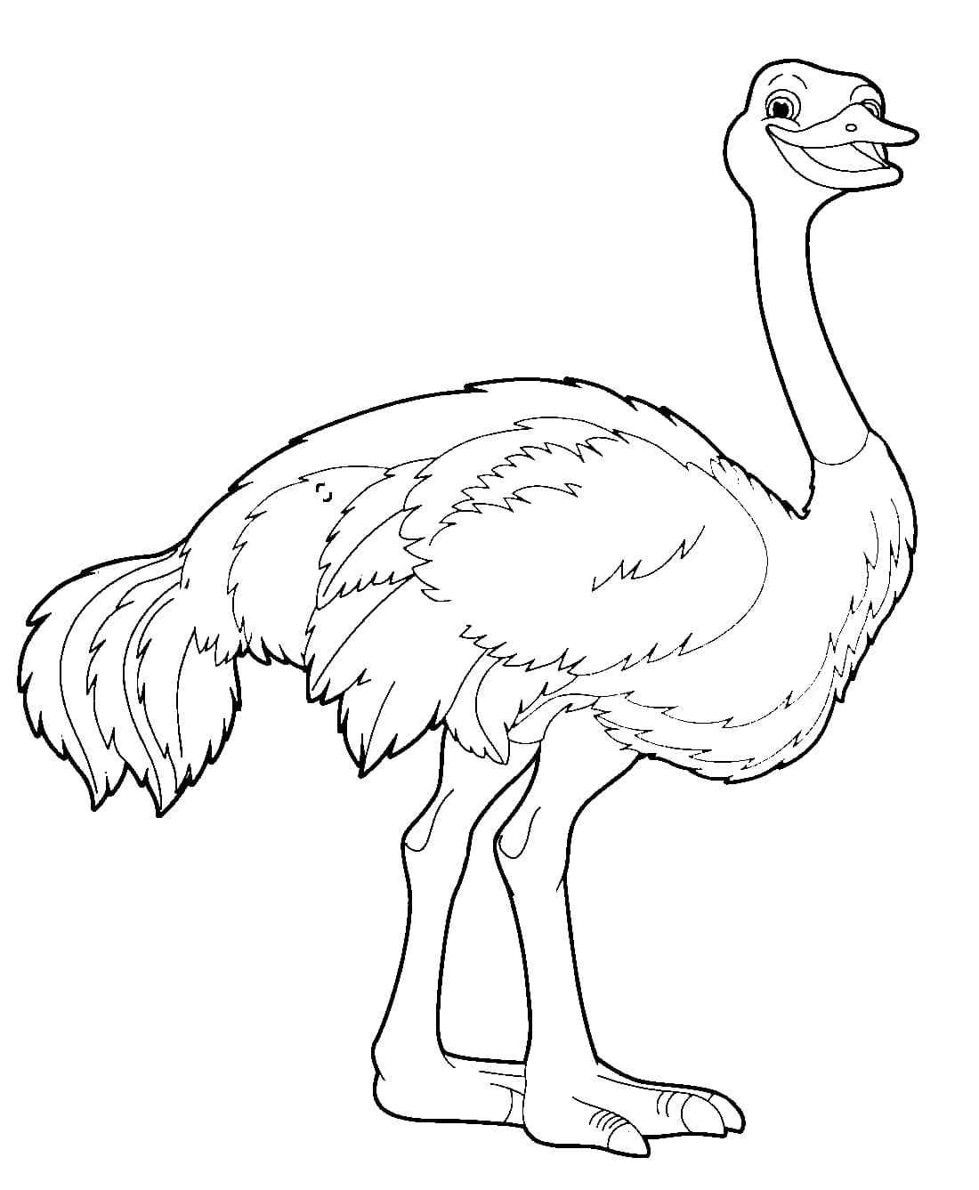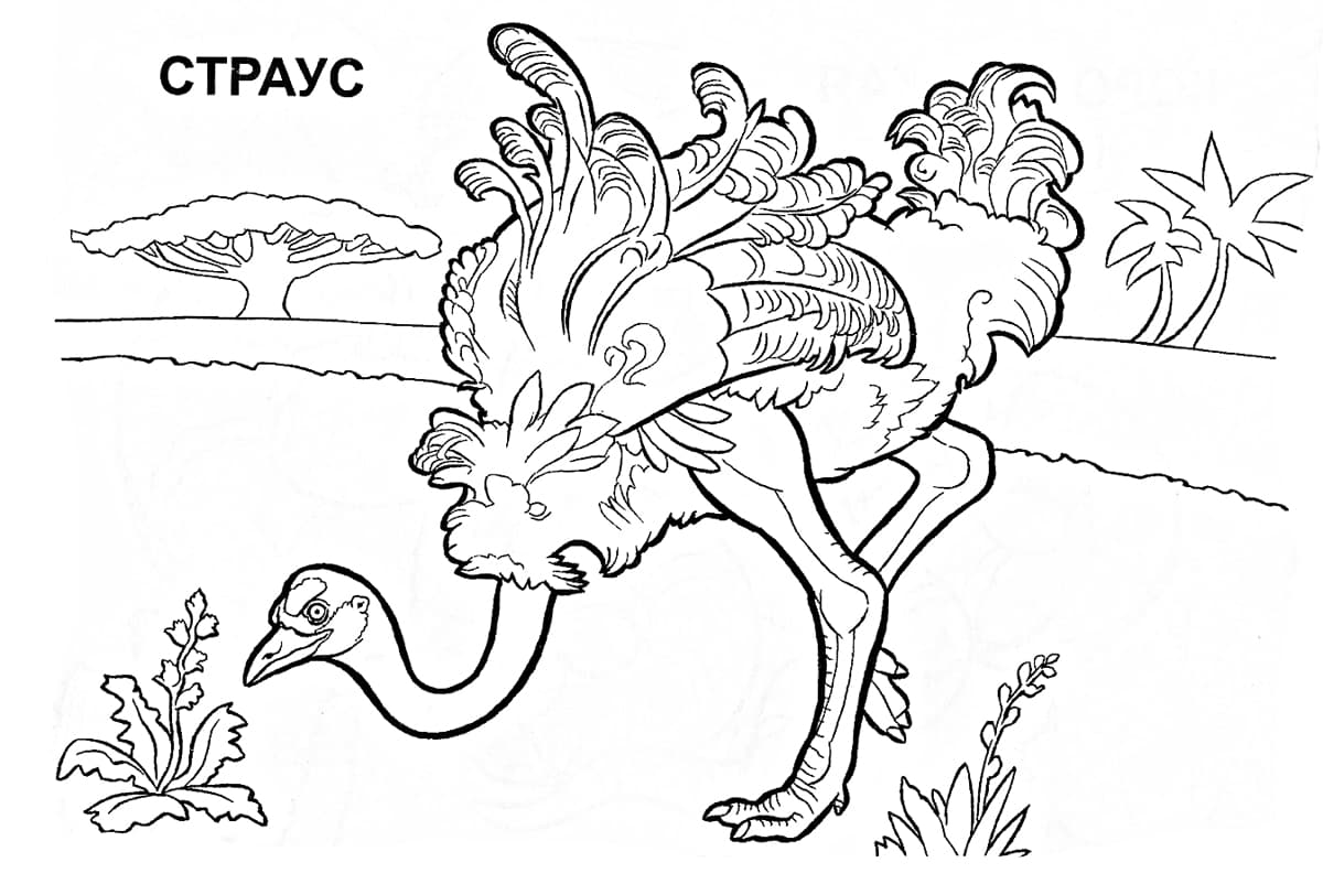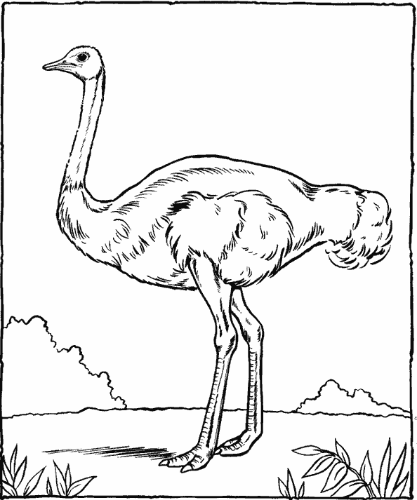 Страус - большая птица, которая не летает, живет она только в Африке. Страус откладывает самые большие яйца в мире, которые весят почти полтора килограмма. С помощью раскраски ребенок сможет запомнить как выглядит птица, а так же ощутит себя настоящим художником. Учеными доказано, что раскраски оказывают положительный эффект на развитие мозга ребенка, тренируют у него терпение и усидчивость. На нашем сайте Вы совершенно бесплатно скачать и распечатать раскраску страус в хорошем качестве.