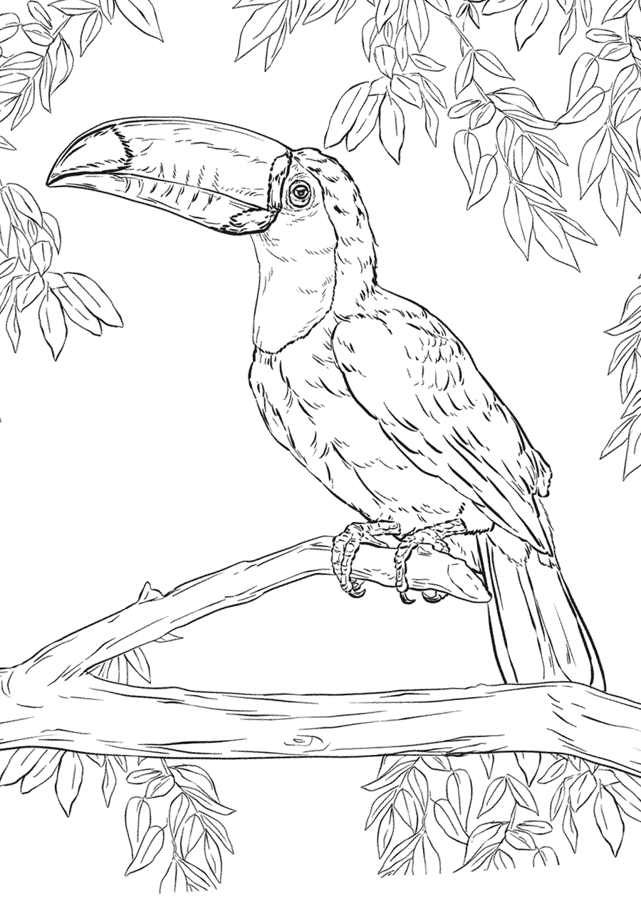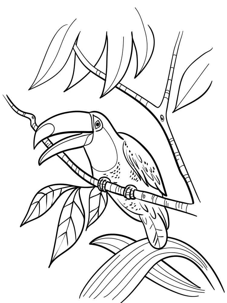 Тукан - общее название, данное многочисленным видам тропических американских лесных птиц, известных своими большими и поразительно окрашенными клювами. Термин Тукан-производное от Тукано, исконно бразильского термина для обозначения птицы—используется в общем названии около 15 видов (Рамфастос и Андигена), а аракарисы и туканеты-очень похожие мелкие птицы того же семейства, которые также считаются туканами, в результате чего общее число видов составляет около 35. На нашем сайте Вы совершенно бесплатно можете скачать и распечатать раскраску тукан в хорошем качестве.