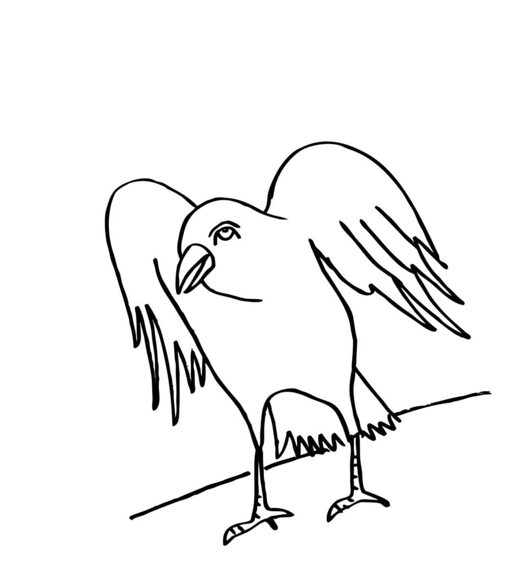 Ворона, один из различных блестящих черных птиц, обитающих в большинстве частей света, за исключением южной части Южной Америки. Подавляющее большинство из 40 или около того видов Corvus известны как вороны, и это название было применено к другим, не связанным с ними птицам. Большие вороны имеют длину около 0,5 метра, а размах крыльев может достигать 1 метра Вороны питаются главным образом на земле, где они целенаправленно ходят. Это всеядные животные, которые любят мясо и даже могут нападать и убивать молодых, слабых животных. Съедаются также ягоды, насекомые, яйца других птиц и падаль. На нашем сайте Вы совершенно бесплатно можете скачать и распечатать раскраску ворона в хорошем качестве.