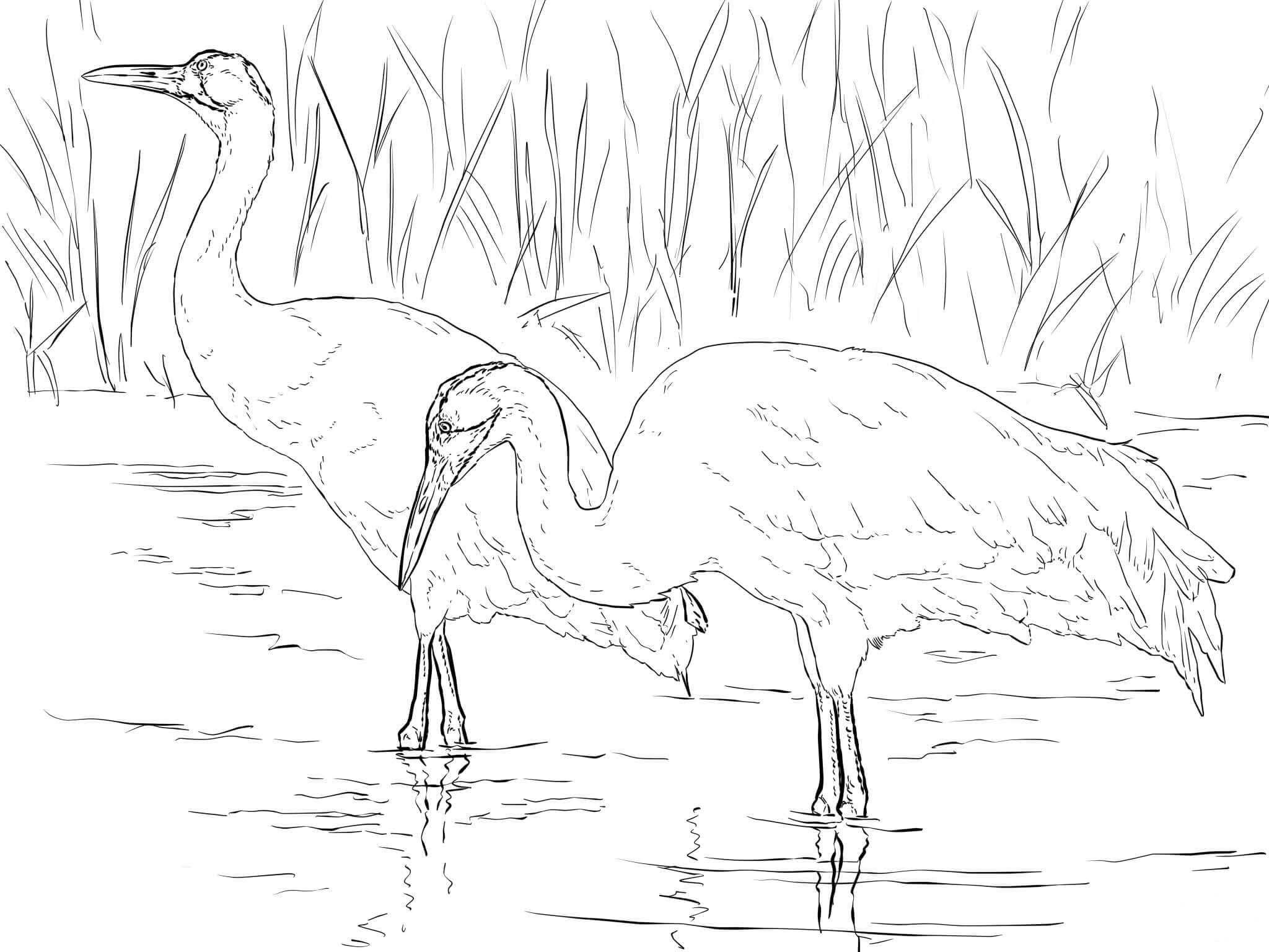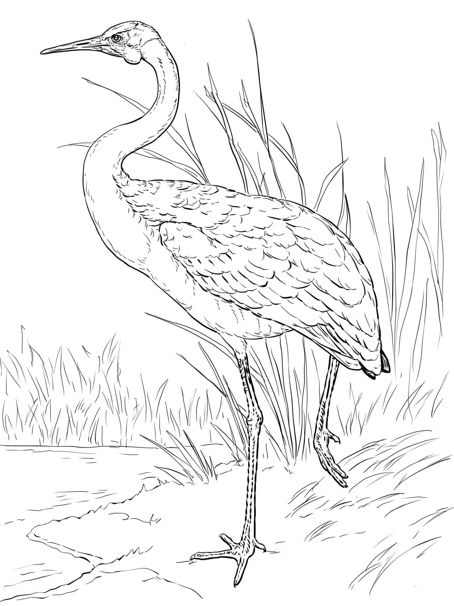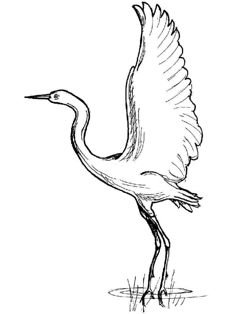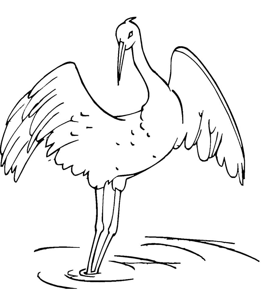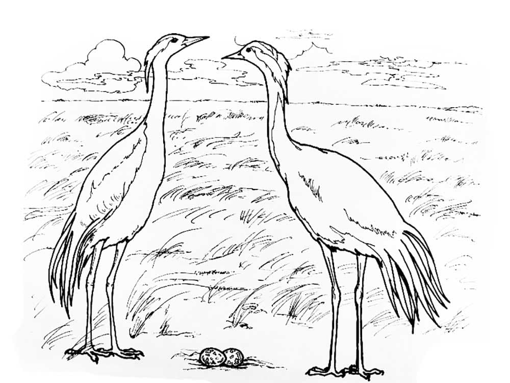 Журавль, один из 15 видов высоких болотных птиц семейства Gruidae. Внешне журавли напоминают цапель, но обычно они крупнее и имеют частично обнаженную голову, более тяжелый клюв, более компактное оперение и приподнятый задний палец. В полете длинная шея вытягивается вперед, а ходули, как ноги, тянутся сзади. Журавли образуют древнюю группу, самые ранние окаменелости были найдены из эоценовых отложений в Северной Америке. Журавли во всем мире, за исключением Южной Америки, но многие популяции находятся под угрозой исчезновения из-за охоты и разрушения среды обитания. На нашем сайте Вы совершенно бесплатно скачать и распечатать раскраску журавль в хорошем качестве.