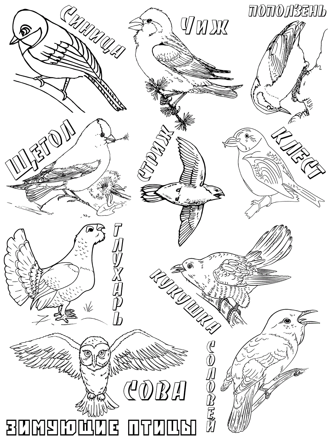 Некоторые птицы ведут кочевой образ жизни зимой, другие проводят более холодные месяцы в юго-западной части континента или в Средиземноморском регионе. Многие перелетные птицы мигрируют в Африку к югу от Сахары. Географические условия определяют несколько основных маршрутов. Альпы являются важным барьером для перелетных птиц. Около 150 видов перемещаются на запад и юго-запад, другие-на юго-восток. На нашем сайте Вы совершенно бесплатно можете скачать и распечатать раскраску зимующие птицы в хорошем качестве. Трафарет и шаблон подойдет для вырезания и создания аппликаций.