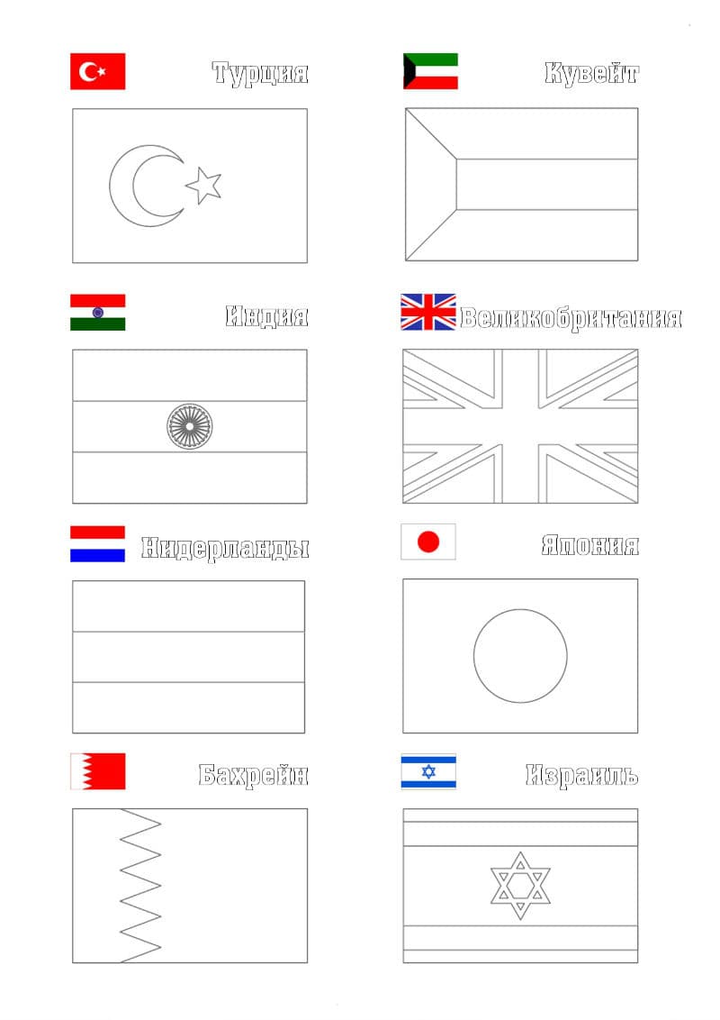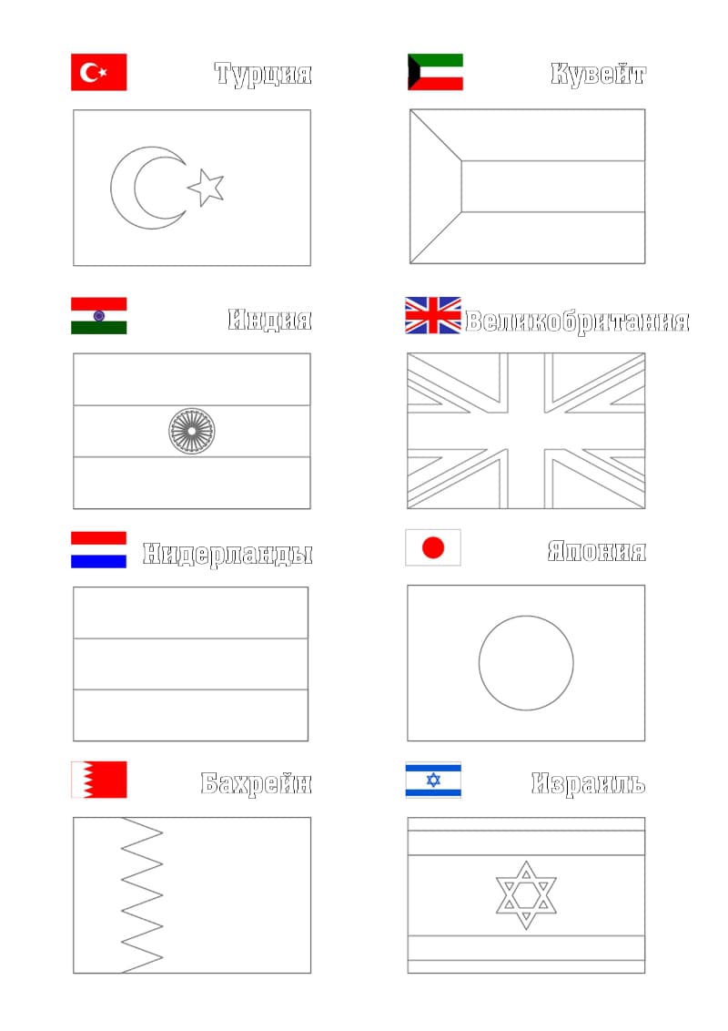 Любую раскраску можно распечатать бесплатно "Раскраски Флаги стран мира". Категория: