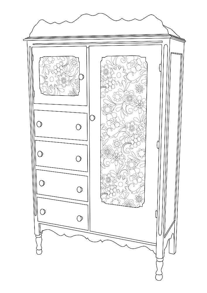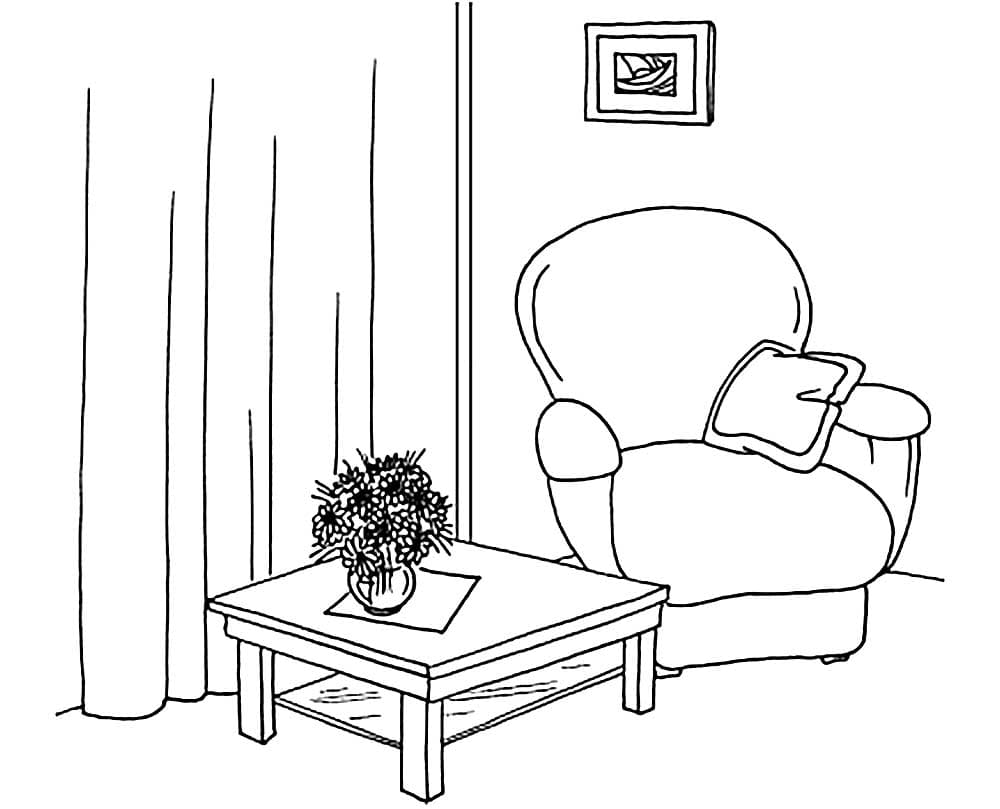 Любую раскраску можно распечатать бесплатно "Раскраска Мебель". Категория: