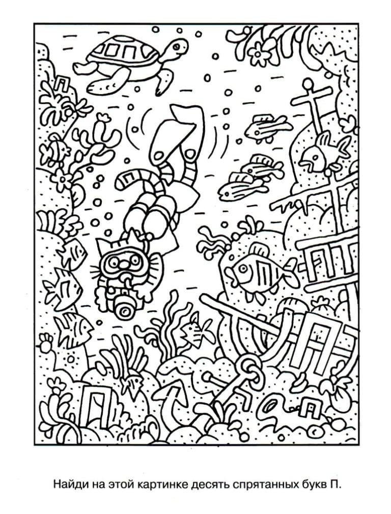 На этой странице Вы можете скачать раскраски, в которых нужно искать букву. Такие раскраски помогают ребенку в форме игры выучить буквы алфавита, а так же весело провести время. Ученые доказали, что рисование и разукрашивание положительно влияет на развитие мозга ребенка, тренирует усидчивость и терпеливость. Здесь добавлены все тридцать три буквы русского алфавита, от А до Я. Ребенку необходимо среди обычной картинки найти одну или несколько "спрятанных" букв, а так же полностью раскрасить рисунок.