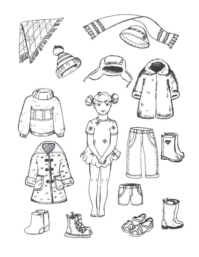 Любую раскраску можно распечатать бесплатно "Раскраска Одежда для детей". Категория: