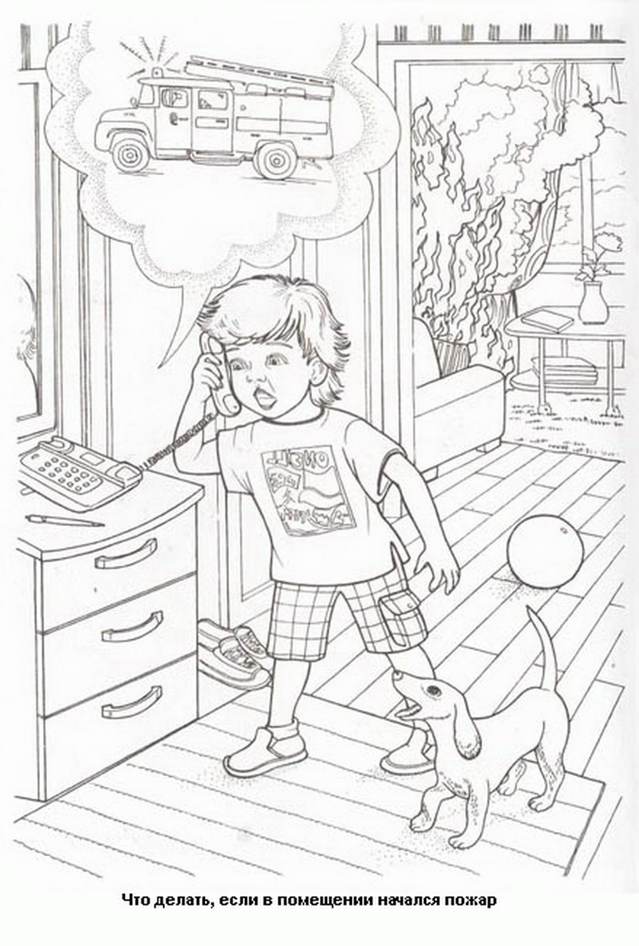 Любую раскраску можно распечатать бесплатно "Раскраски Пожарная безопасность". Категория: