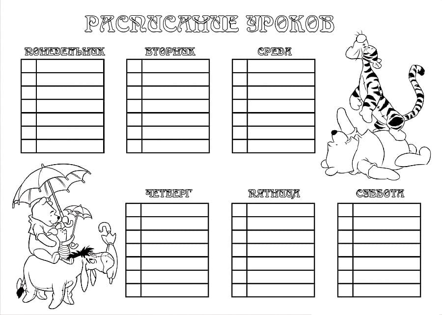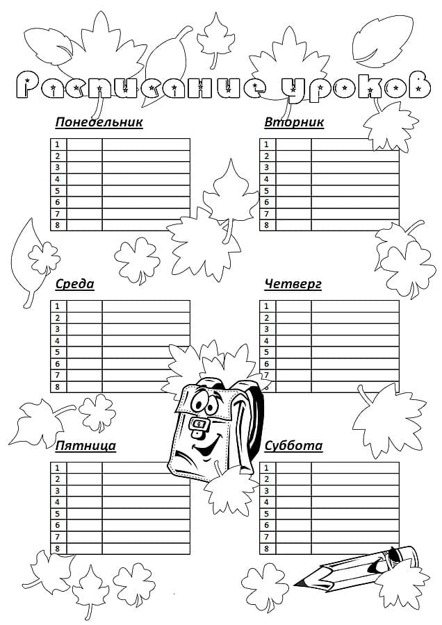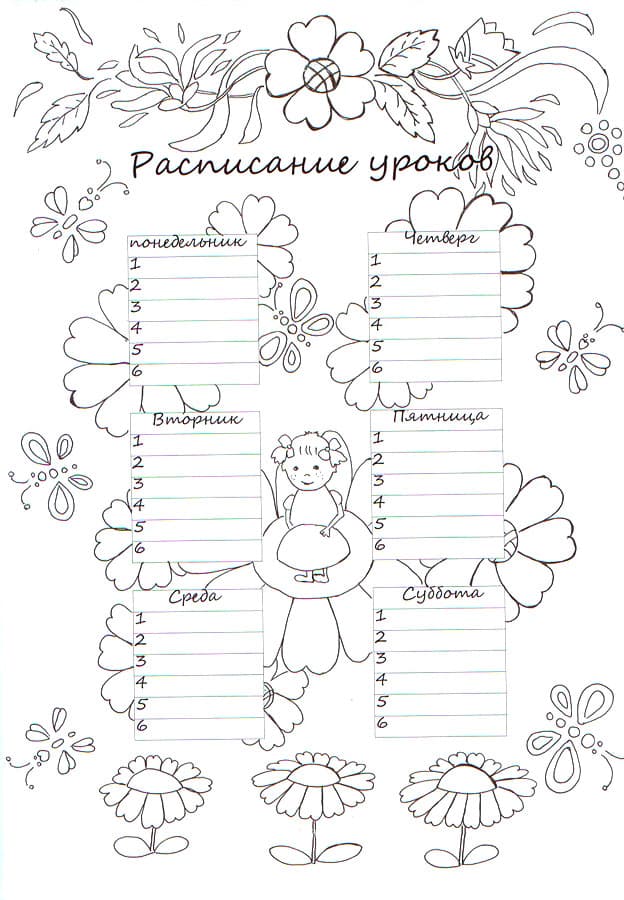 Любую раскраску можно распечатать бесплатно "Раскраски Расписание уроков". Категория: