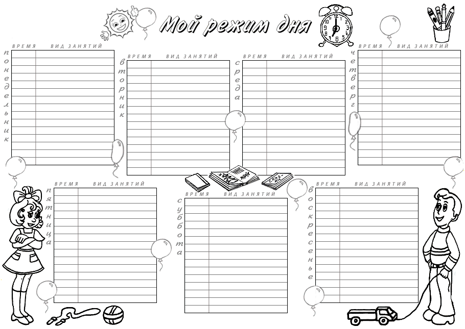 Любую раскраску можно распечатать бесплатно "Раскраска Режим дня". Категория: